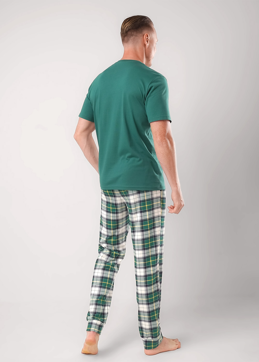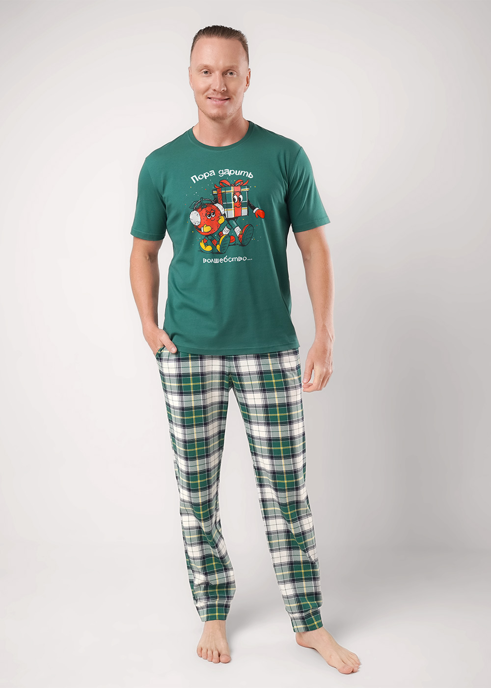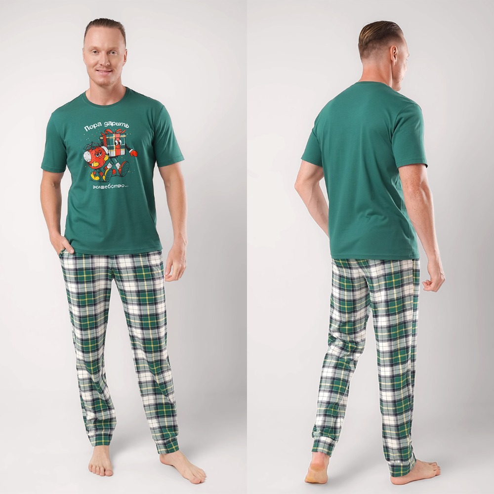 Мужская пижама «Clever» — это стильный и комфортный комплект для дома. Мягкий и приятный комплект из хлопка создан специально для комфорта в повседневной жизни. Эта мужская пижама включает просторную футболку и свободные брюки с эластичным поясом. Благодаря свободному крою, этот комплект не сковывает движений и позволяет чувствовать себя свободно и комфортно. Футболка прямого силуэта с втачным коротким рукавом, горловина округлая. Брюки прямые с поясом на резинке, карманы с отрезным боковым краем. Одежда из хлопка гипоаллергенная и экологичная, не вызывает раздражений на коже. Уход за изделием простой, можно подвергать машинной стирке, после нее вещи не сядут и не полиняют.Создайте свой уютный семейный образ с парными домашними костюмами фирмы Clever из новогодней коллекции.Отличный выбор для семейных фото, уютных вечеров и новогодних традиций — создайте свои особенные моменты вместе!