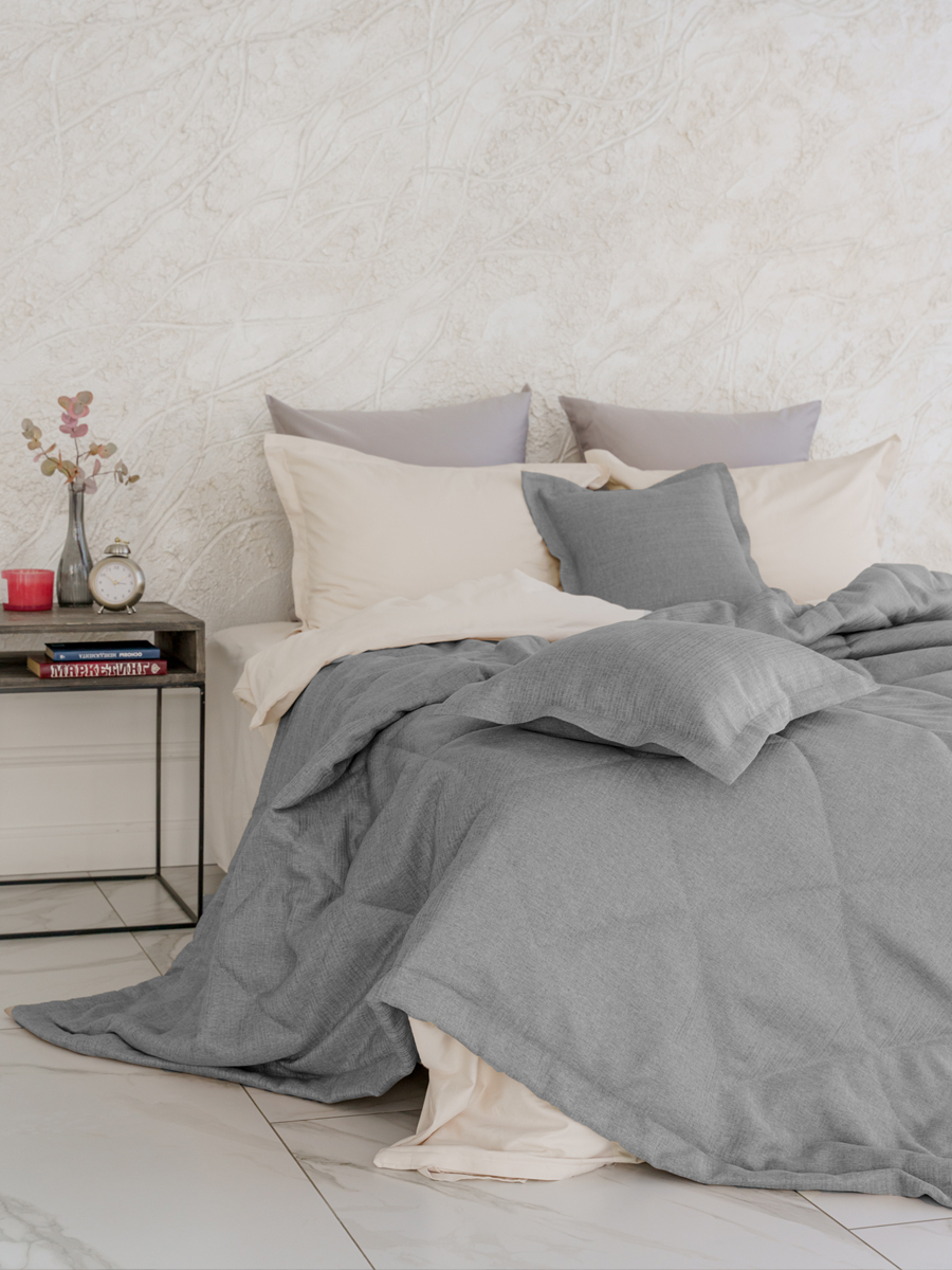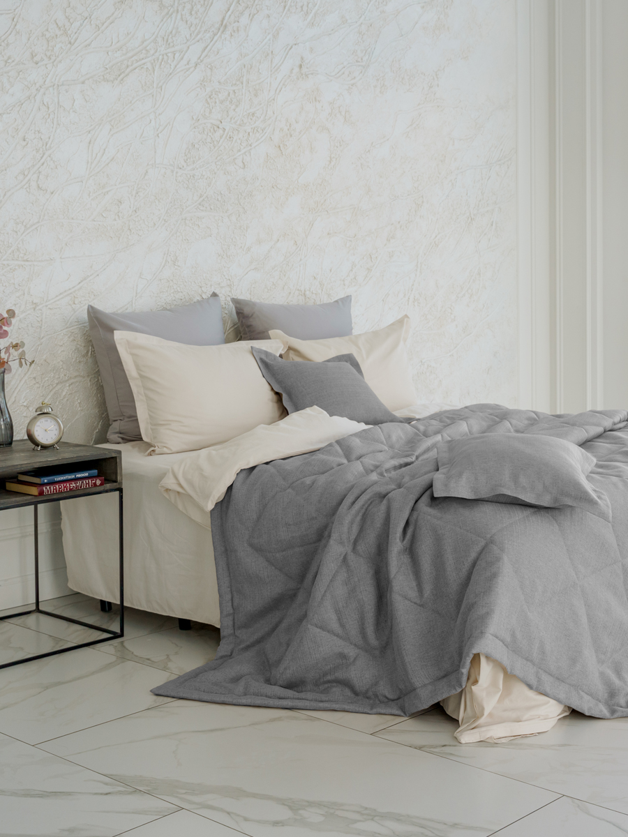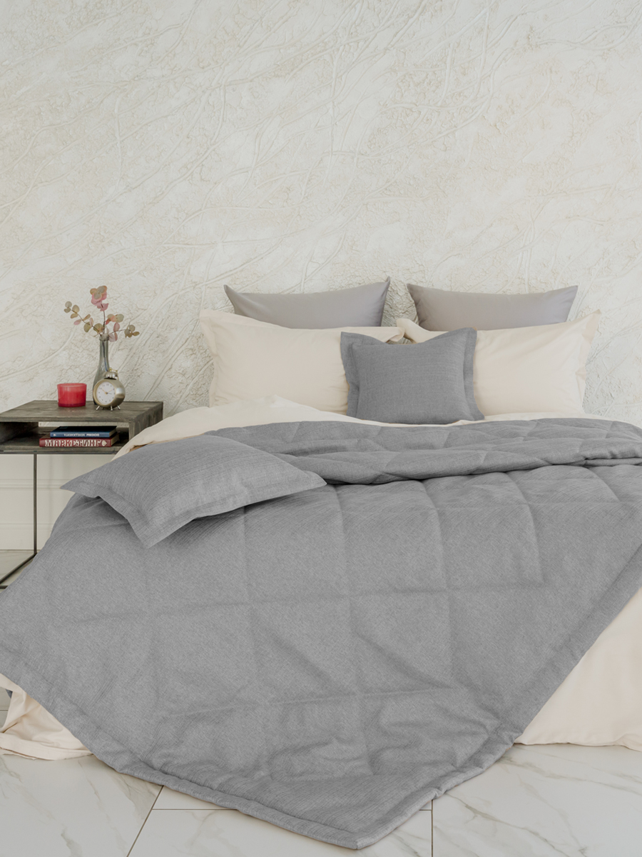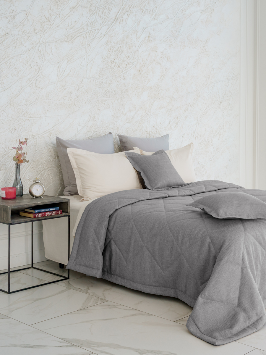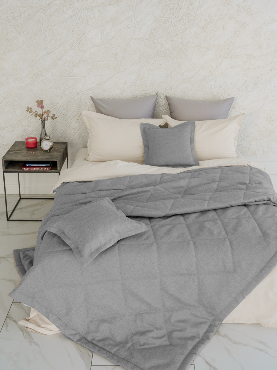 Стильное и практичное покрывало с наволочками от российского производителяи Ла Прима — это идеальное и практичное решение для вашего интерьера. В комплект входят мягкое покрывало с изысканным узором и две наволочки, которые идеально дополняют друг друга. На наволочках есть элегантные "ушки" для стильного акцента. Нежные спокойные оттенки и лаконичный дизайн делают этот набор подходящим для любого стиля спальни. Покрывало легко стирается и сохраняет свою форму, а наволочки надежно фиксируются благодаря удобным молниям. Создайте уют и комфорт в вашей спальне с этим элегантным набором!
