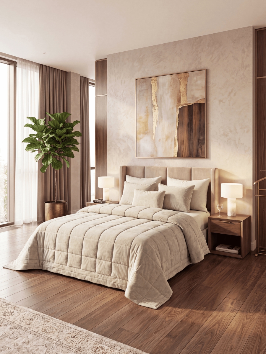 Стильное и практичное покрывало с наволочками от российского производителяи Ла Прима — это идеальное и практичное решение для вашего интерьера. В комплект входят мягкое покрывало с изысканным узором и две наволочки, которые идеально дополняют друг друга. На наволочках есть элегантные "ушки" для стильного акцента. Нежные спокойные оттенки и лаконичный дизайн делают этот набор подходящим для любого стиля спальни. Покрывало легко стирается и сохраняет свою форму, а наволочки надежно фиксируются благодаря удобным молниям. Создайте уют и комфорт в вашей спальне с этим элегантным набором!