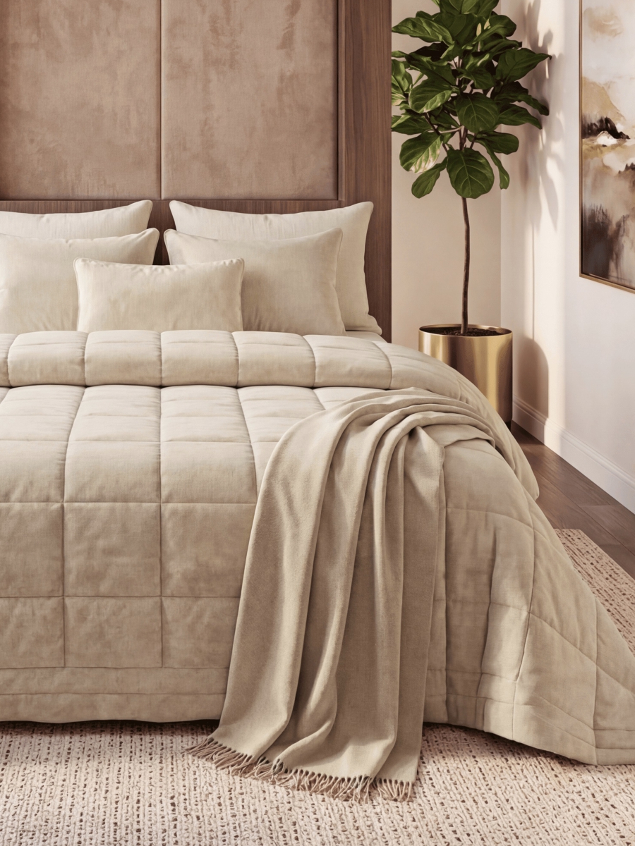 Стильное и практичное покрывало с наволочками от российского производителяи Ла Прима — это идеальное и практичное решение для вашего интерьера. В комплект входят мягкое покрывало с изысканным узором и две наволочки, которые идеально дополняют друг друга. На наволочках есть элегантные "ушки" для стильного акцента. Нежные спокойные оттенки и лаконичный дизайн делают этот набор подходящим для любого стиля спальни. Покрывало легко стирается и сохраняет свою форму, а наволочки надежно фиксируются благодаря удобным молниям. Создайте уют и комфорт в вашей спальне с этим элегантным набором!