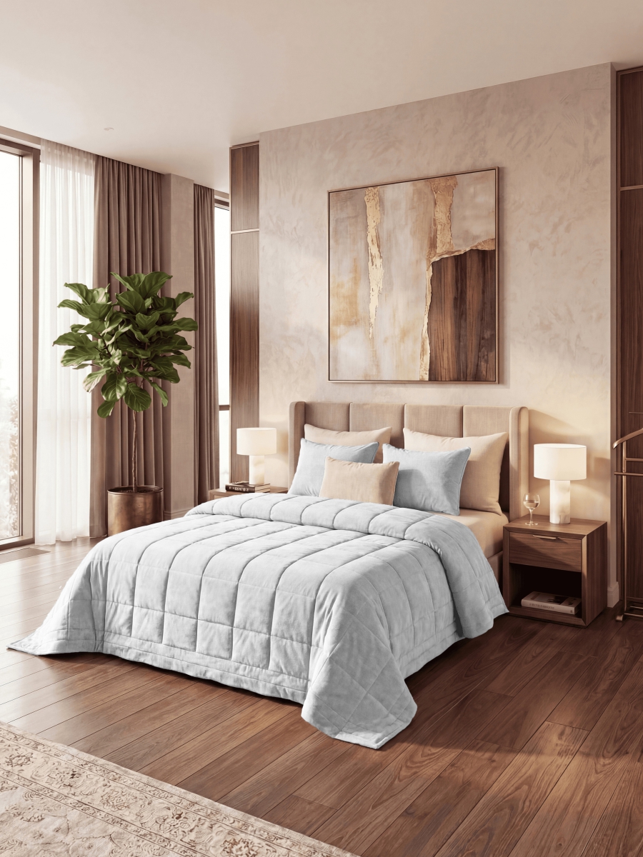 Стильное и практичное покрывало с наволочками от российского производителяи Ла Прима — это идеальное и практичное решение для вашего интерьера. В комплект входят мягкое покрывало с изысканным узором и две наволочки, которые идеально дополняют друг друга. На наволочках есть элегантные "ушки" для стильного акцента. Нежные спокойные оттенки и лаконичный дизайн делают этот набор подходящим для любого стиля спальни. Покрывало легко стирается и сохраняет свою форму, а наволочки надежно фиксируются благодаря удобным молниям. Создайте уют и комфорт в вашей спальне с этим элегантным набором!