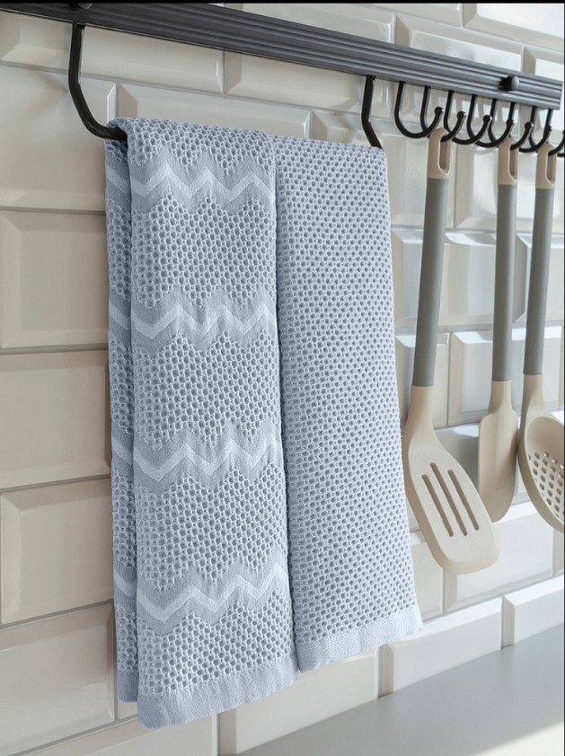 Комплект полотенец с петельками для кухни 2 шт "DeNastia" Зиг-заг синий/D100466 35*70 см