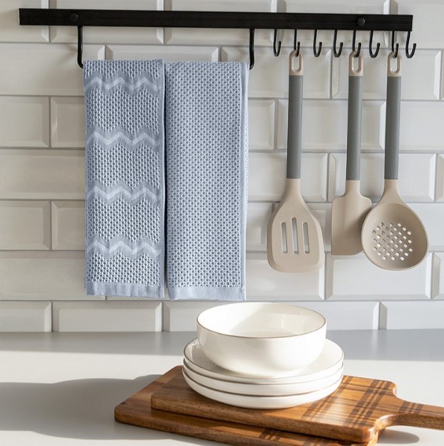 Кухонные полотенца DeNastia изготовлены из гипоаллергенного натурального хлопка. Отличаются оптимальной плотностью - 270 г/м2, за счет чего изделия мягче на ощупь, а также лучше впитывают влагу, надолго сохраняют цвет и форму. Хлопок натуральный, не обработан химическими компонентами, после стирки возможна усадка. Благодаря лаконичному дизайну полотенца идеально впишутся в интерьер, для удобства использования имеется петелька для подвеса на полотенцедержатель. При правильном уходе за полотенцами для кухни они не потеряют внешний вид при повседневном использовании и стирке.