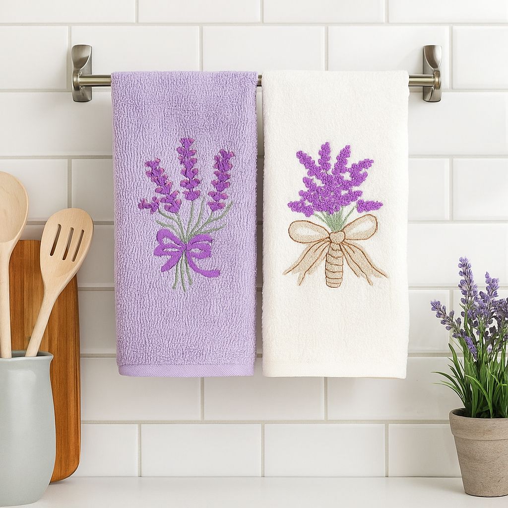 Комплект махровых полотенец для кухни 2 шт. "Ambiella" Лаванда кремовый/сиреневый v1 30*50 см