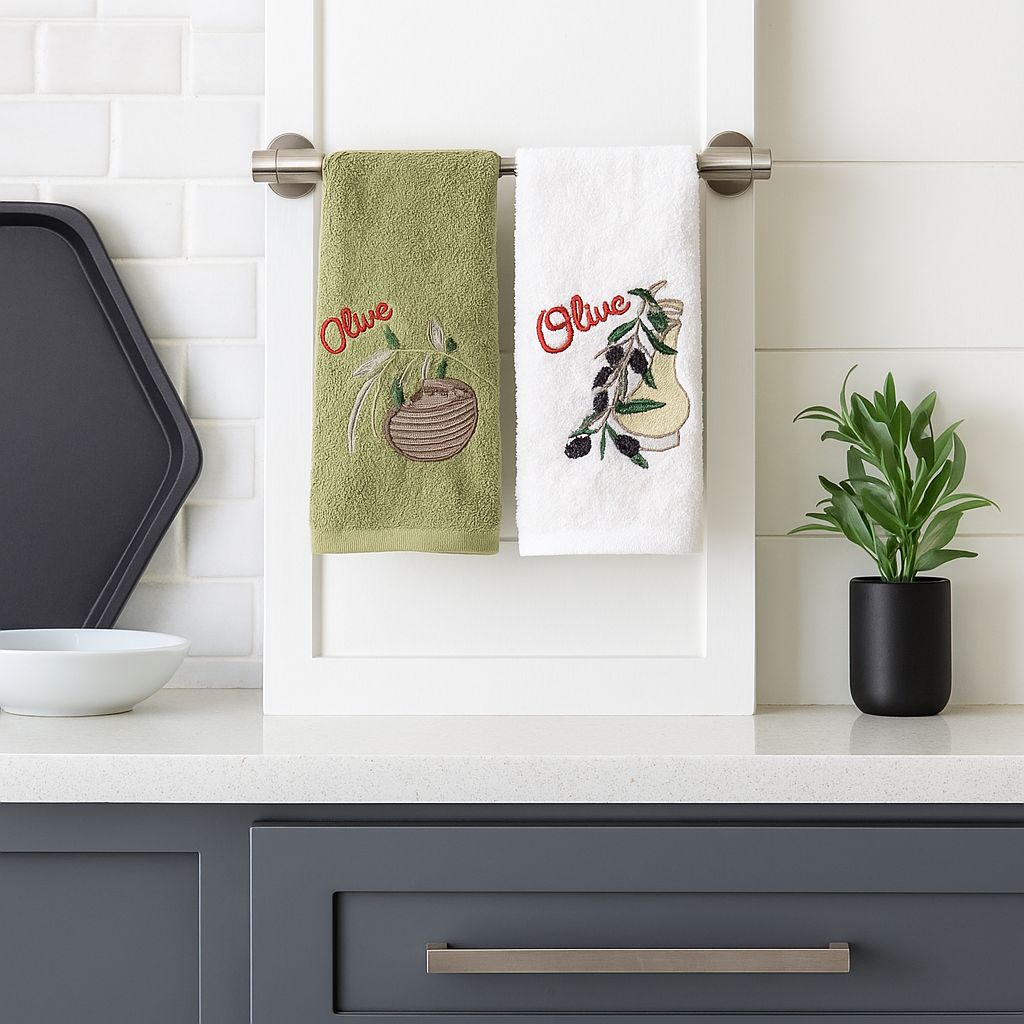 Комплект махровых полотенец для кухни 2 шт. "Ambiella" Олива кремовый/зеленый v3 30*50 см