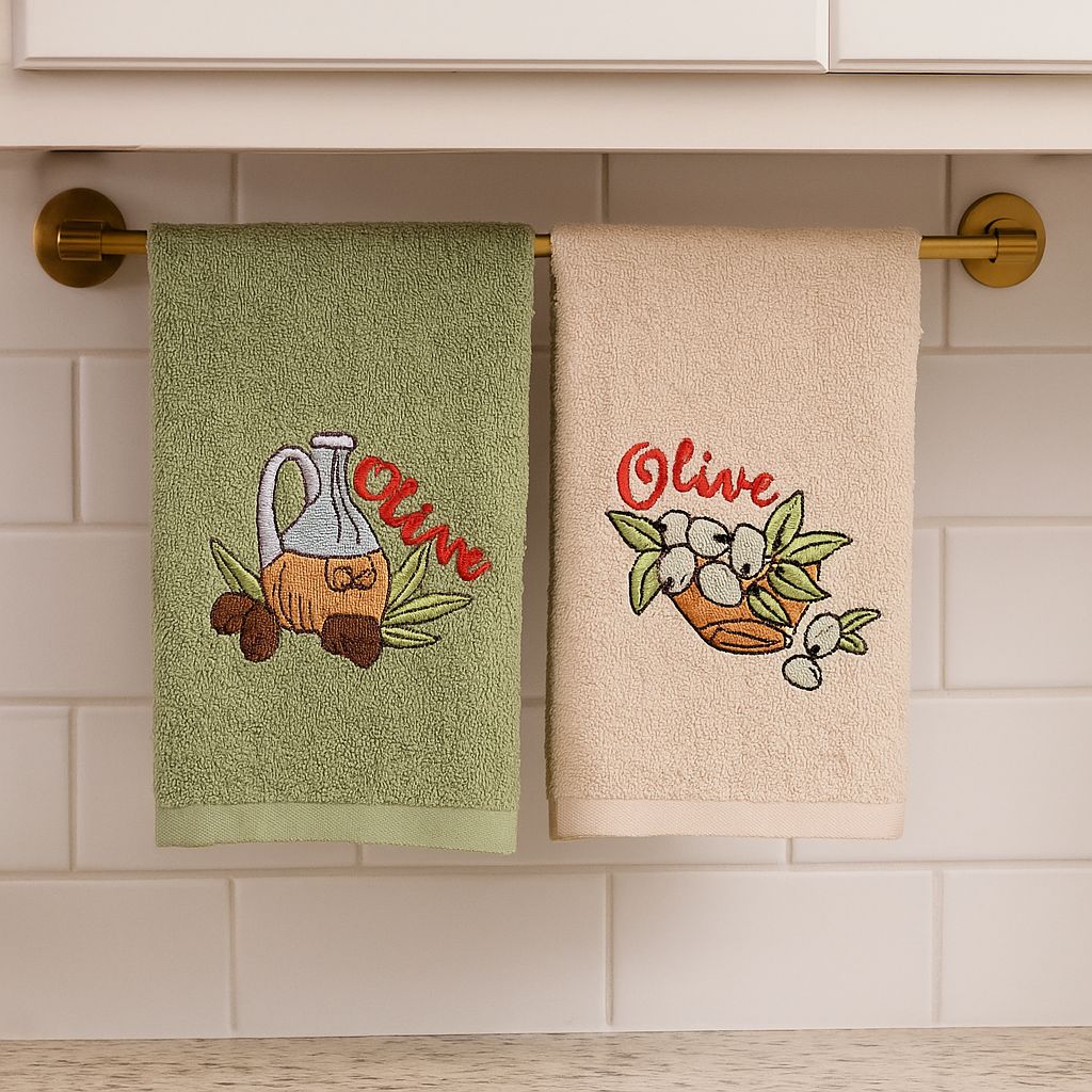 Комплект махровых полотенец для кухни 2 шт. "Ambiella" Олива бежевый/зеленый v1 30*50 см