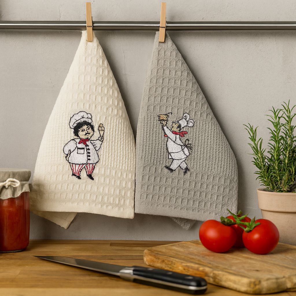 Комплект вафельных полотенец из 100% хлопка создан для бережного ухода за посудой и функционального использования в быту. Основным достоинством полотенца можно считать его впитывающую способность и быстрое высыхание. Также преимущество вафельного текстиля в его структуре, материал впитывает в несколько раз больше, чем любые другие ткани. При использовании не оставляет за собой частичек ворса. Комплект декорирован отделкой в виде вышивки. Благодаря натуральному составу полотенца обладают отличной износостойкостью и прочностью. Простой процесс ухода. После стирки не линяют и не выцветают, имеют устойчивое окрашивание.