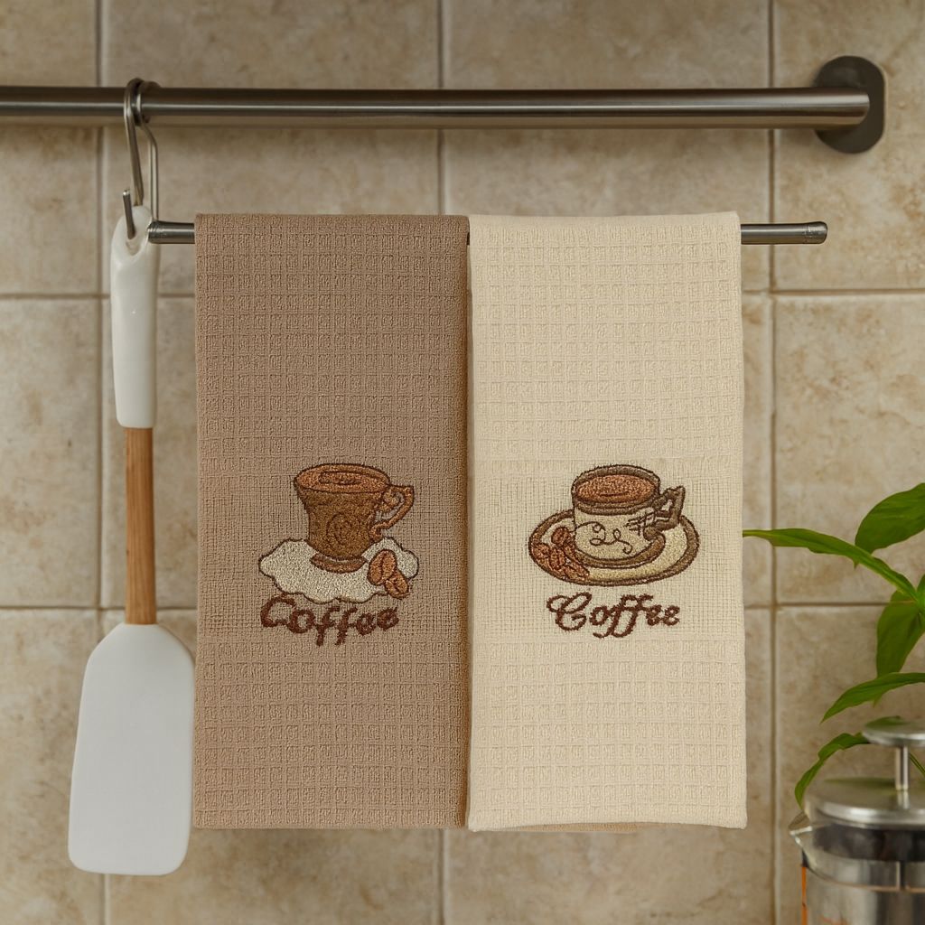Комплект полотенец турецкого производителя Метеор (Meteor) изготовленные из 100% хлопка, созданы для бережного ухода за посудой и функционального использования в быту. Полотенца изготовлены из вафельного полотна, обладают хорошими впитывающими свойствами. Структура ткани позволяет воздуху свободно проникать через волокна, что позволяет полотенцу быстрее высыхать. Благодаря натуральному составу полотенца обладают отличной износостойкостью, прочностью и будут служить Вам долгое время. Отличаются мягкостью и гипоаллергенностью. Простой процесс ухода. После стирки не линяют и не выцветают, имеют устойчивое окрашивание. В комплект входит 2 полотенца, размером 40*60 см. Два гармоничных, натуральных оттенка создадут на вашей кухне уютную атмосферу, а процесс приготовления пищи более комфортным. Полотенца имеют отделку в виде вышивки, подходят для декорирования стола. Подарочные кухонные полотенца – это всегда желанный подарок для любой хозяйки. Как презент на любой праздник или для повседневного использования.