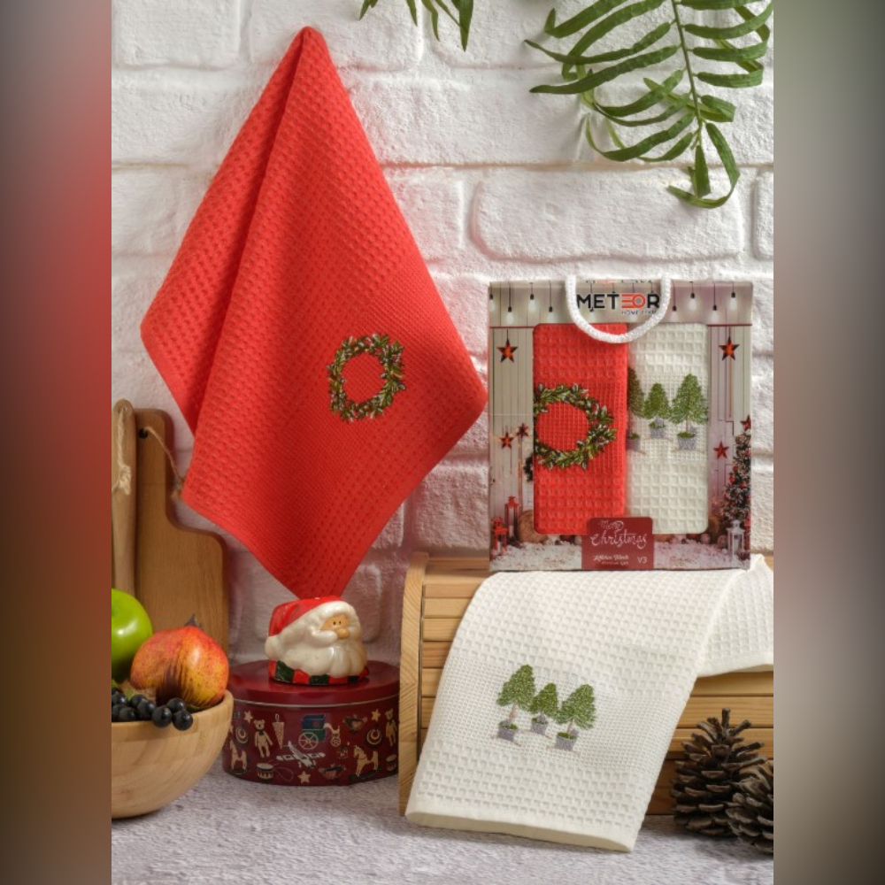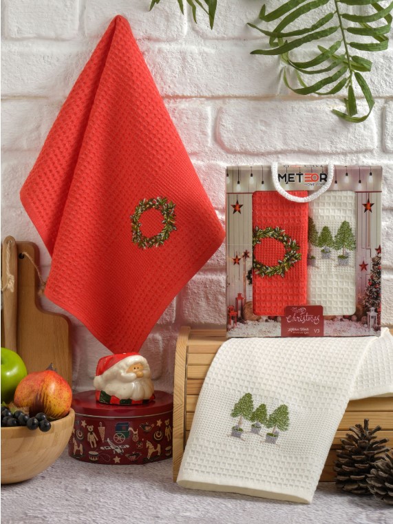 Комплект полотенец турецкого производителя Метеор (Meteor) изготовленные из 100% хлопка, созданы для бережного ухода за посудой и функционального использования в быту. Полотенца изготовлены из вафельного полотна, обладают хорошими впитывающими свойствами. Полотенце быстро сохнет, поскольку структура ткани обеспечивает эффективную циркуляцию воздуха между волокнами. Благодаря натуральному составу полотенца обладают отличной износостойкостью, прочностью и будут служить Вам долгое время. Простой процесс ухода. После стирки не линяют и не выцветают, имеют устойчивое окрашивание. Яркие классические расцветки с новогодней символикой создадут праздничное настроение и уют в вашем доме. Упакованы в красивую подарочную коробку, что послужит отличным подарком для друзей и близких.