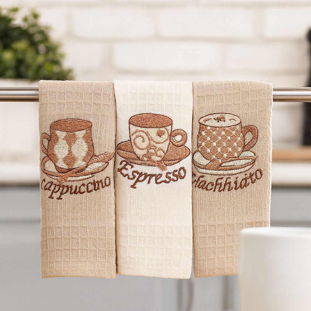 Комплект полотенец турецкого производителя Метеор (Meteor) изготовленные из 100% хлопка, созданы для бережного ухода за посудой и функционального использования в быту. Полотенца изготовлены из вафельного полотна, обладают хорошими впитывающими свойствами. Структура ткани позволяет воздуху свободно проникать через волокна, что позволяет полотенцу быстрее высыхать. Благодаря натуральному составу полотенца обладают отличной износостойкостью, прочностью и будут служить Вам долгое время. Отличаются мягкостью и гипоаллергенностью. Простой процесс ухода. После стирки не линяют и не выцветают, имеют устойчивое окрашивание. В комплект входит 3 полотенца, размером 40*60 см. Три гармоничных, натуральных оттенка создадут на вашей кухне уютную атмосферу, а процесс приготовления пищи более комфортным. Полотенца имеют отделку в виде вышивки, подходят для декорирования стола. Кухонные полотенца – это всегда желанный подарок для любой хозяйки. Как презент на любой праздник или для повседневного использования.