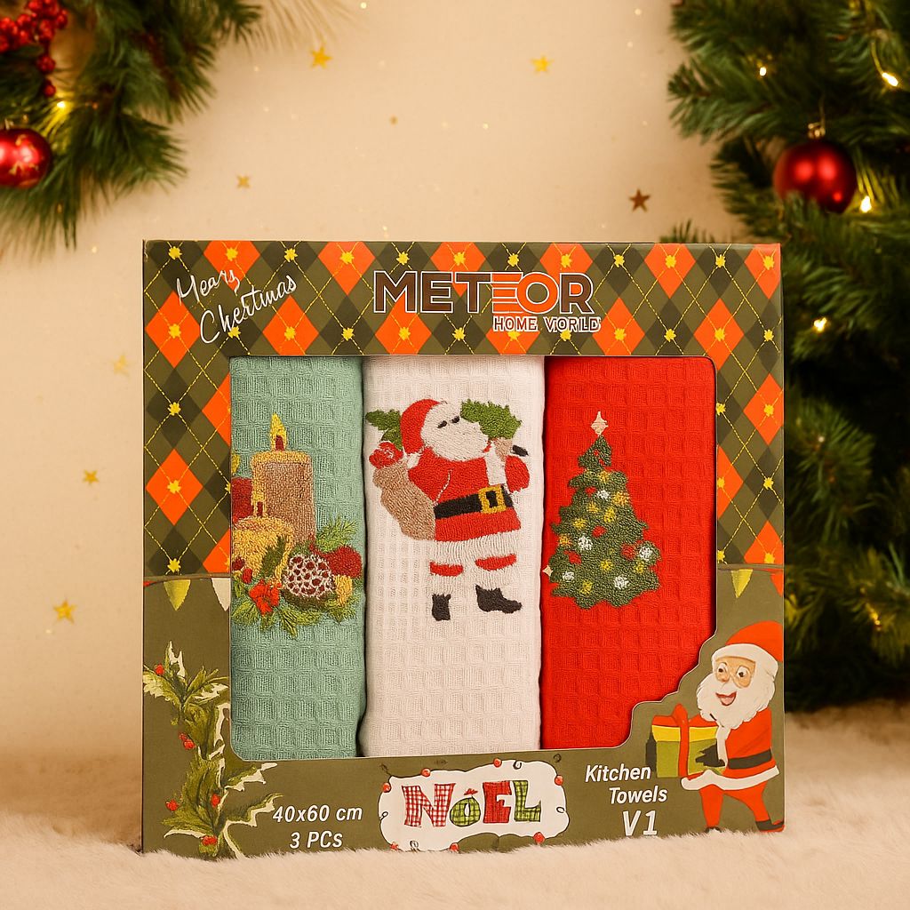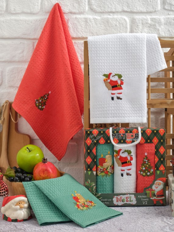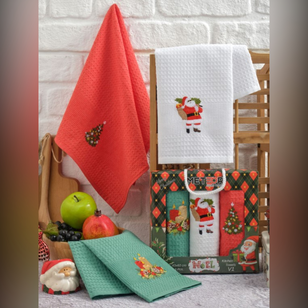 Комплект полотенец турецкого производителя Метеор (Meteor) изготовленные из 100% хлопка, созданы для бережного ухода за посудой и функционального использования в быту. Полотенца изготовлены из вафельного полотна, обладают хорошими впитывающими свойствами. Полотенце быстро сохнет, поскольку структура ткани обеспечивает эффективную циркуляцию воздуха между волокнами. Благодаря натуральному составу полотенца обладают отличной износостойкостью, прочностью и будут служить Вам долгое время. Простой процесс ухода. После стирки не линяют и не выцветают, имеют устойчивое окрашивание. Яркие классические расцветки с новогодней символикой создадут праздничное настроение и уют в вашем доме. Упакованы в красивую подарочную коробку, что послужит отличным подарком для друзей и близких.