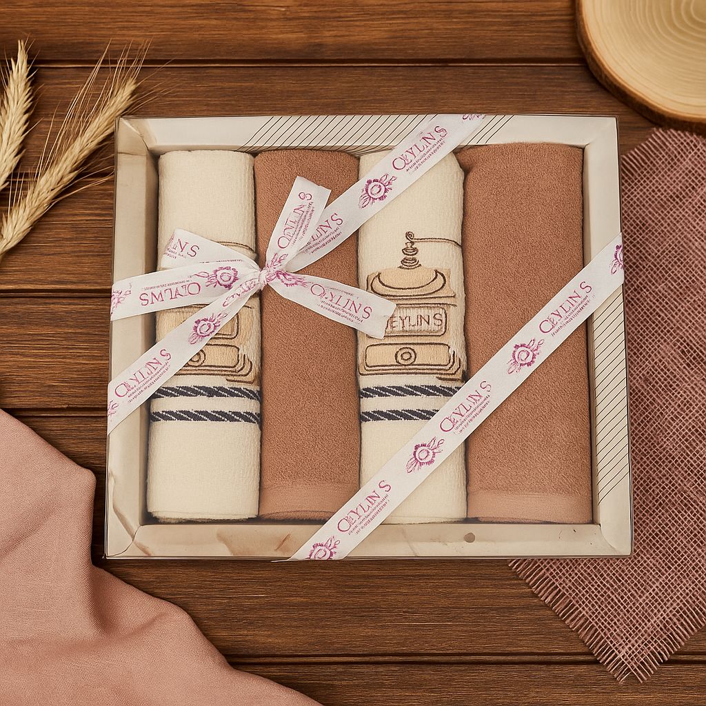 Комплект махрово-вафельных полотенец для кухни 4 шт. "Ceylin's" Кофемолка/коричневый 40*60 см