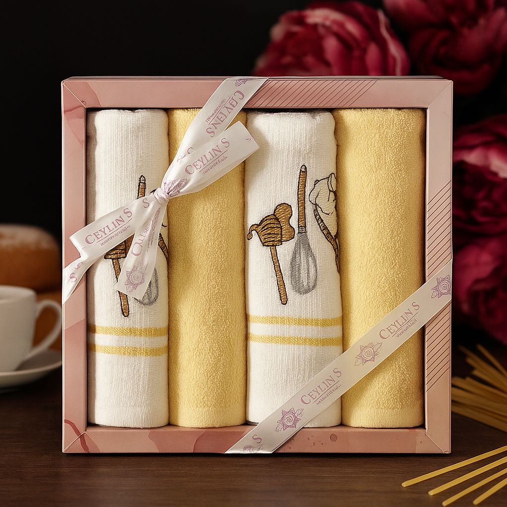 Комплект махрово-вафельных полотенец для кухни 4 шт.  "Ceylin's" Кухонная утварь/желтый 40*60 см