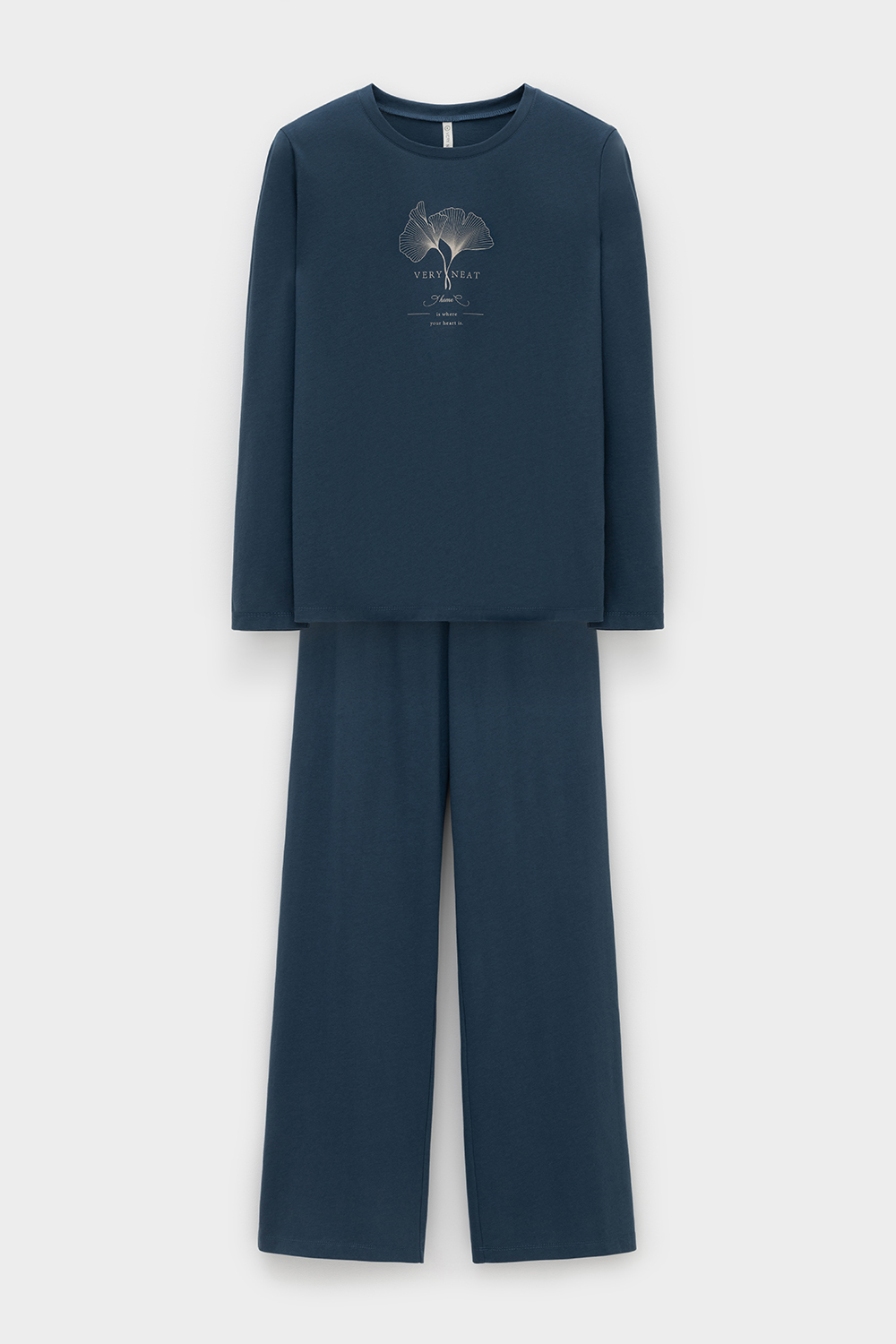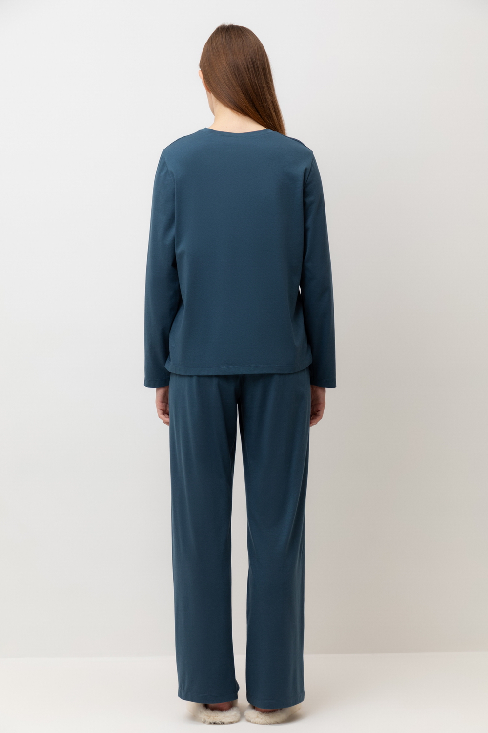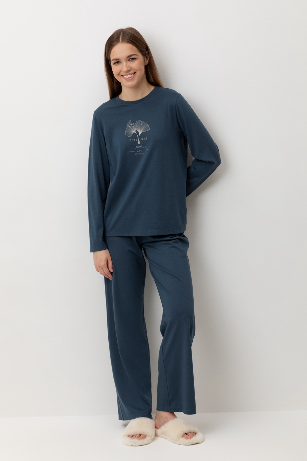 Женский комплект из мягкой ткани, сочетающей 60% хлопка и 40% модала, — идеальный выбор для домашнего уюта и комфорта. Практичный и стильный комплект состоит из свободной кофты с длинными рукавами и круглым вырезом, украшенной изящным принтом, а также широких брюк, которые обеспечивают полную свободу движений.Сочетание хлопка и модала придаёт изделию особые преимущества: натуральная хлопковая составляющая гарантирует отличную воздухопроницаемость и гипоаллергенность, а волокна модала добавляют ткани шелковистую гладкость, лёгкую эластичность и повышенную износостойкость. Благодаря такому составу комплект не только приятен на ощупь, но и долго сохраняет первоначальный вид даже после множества стирок — не деформируется, не теряет цвет и не покрывается катышками. Спокойный, глубокий оттенок комплекта легко впишется в любой интерьер, а лаконичный дизайн подойдёт для повседневной домашней одежды. Комплект прекрасно подойдёт для отдыха после насыщенного дня — в нём будет комфортно в любое время года.
