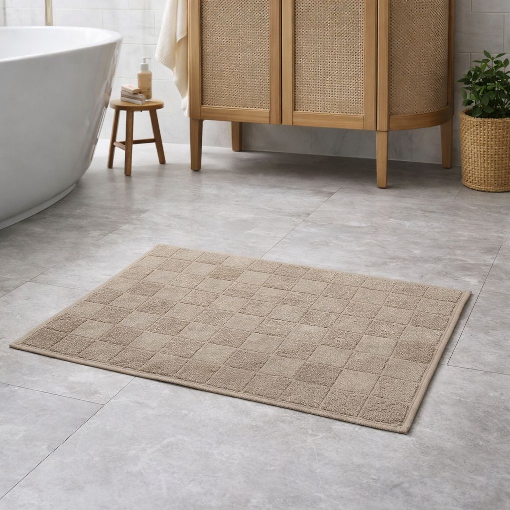 Махровый пестротканый полотенце-коврик для ванной отличается мягкой пушистой текстурой — он изготовлен исключительно из 100% натурального хлопка.Благодаря качественной натуральной пряже, относительно высокой плотности и особой технологии обработки махровых петель воздухом коврик очень мягкий, пушистый и объемный. Размеры коврика — 50 × 70 см, плотность составляет 650 г/м². Такая комбинация делает его универсальным: он органично впишется как в компактную, так и в просторную ванную комнату. Ступать на такой коврик после водных процедур особенно приятно.Такой махровый коврик — практичный и всегда уместный подарок.