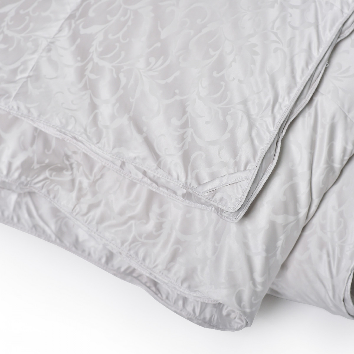 Коллекция Diamond это идеальное сочетание ткани, наполнителя и дизайна. Технологичный современный модал и классический хлопок в составе ткани. Пуховый наполнитель высокого качества остается непревзойденным утеплителем. Бортик одеяла позволяет пуху свободно распределяться в своей кассете, благодаря этому скопления пушинок без стеснения удерживают большее количество воздуха, что делает одеяло таким легким и очень теплым. Материал чехла — сатин-жаккард серебристого цвета. Отборный белый пух северных пород гусей в одеяле и подушке подарит ни с чем не сравнимое удовольствие от его пышности и мягкости. Этот природный компонент отличается легкостью и высокой теплоизоляцией. Наполнитель: 100% пух гусиный белый "Экстра"