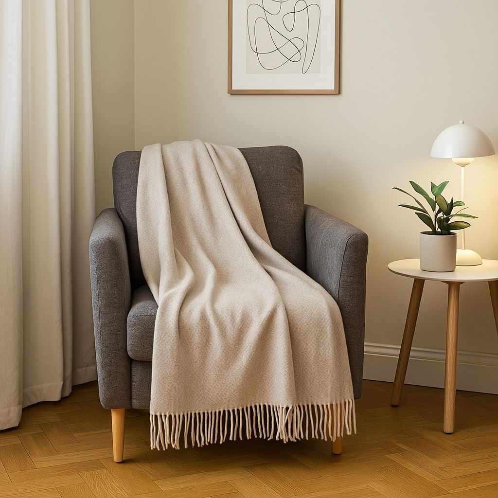 Плед Familia из шерсти мериноса с добавлением мягкого, воздушного кашемира. Эти два вида шерсти одни из самых лучших по своим качествам: мягкие и легкие, дарят тепло и комфорт. Мериносовое руно прекрасно согревает в любую погоду, хорошо впитывает влагу, обеспечивая эффект сухого тепла. Помимо этого, овечья шерсть способна снимать статическое электричество, мышечное и нервное напряжение, помогая тем самым расслабиться. Пух кашмирских коз позволяет создавать воздушные модели, которые по своей мягкости превосходят шелк. Этот ценный пух собирают вручную, вычесывая коз весной, одна козочка может дать всего 100-150 граммов нежной и теплой шерсти.
