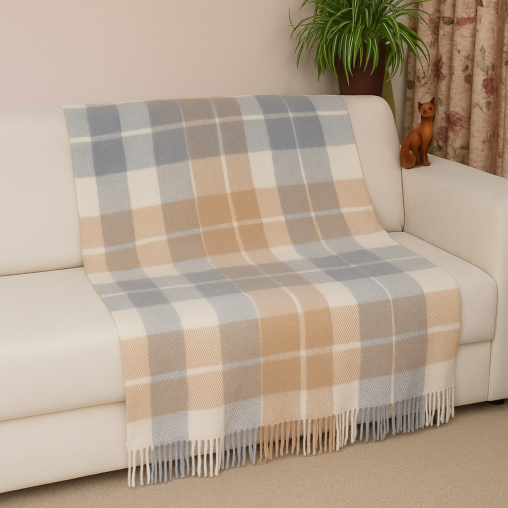 Плед можно использовать как покрывало или одеяло. Мягкое и приятное для тела мериносовое руно сделает ваш отдых комфортным, благотворно воздействуя на весь организм. Добавление полиэстера в состав делает плед прочным и износостойким, облегчает уход за ним и увеличивает срок эксплуатации. Размеры пледа указаны с учётом кистей, расположенных по ширине изделия.