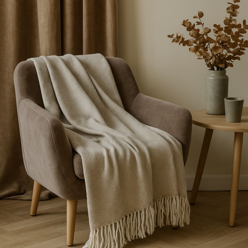 Пледы Vladi изготовлены из хлопка с добавлением полиэстера. Благодаря натуральному хлопку в составе плед теплый, мягкий и приятный на ощупь. Изделие сохранило все положительные свойства натурального хлопка высшего класса, и при этом избавилось от недостатков, плед не скатается и не вышаркается со временем. Плотный материал абсолютно гипоаллергенен, обладает хорошим воздухообменом. Натуральность хлопка успешно сочетается с высокой прочностью, износостойкостью и несминаемостью полиэстера, и предохраняет изделие от усадки. Трендовые оттенки сделают плед ярким акцентом в современном интерьере спальни или гостиной. Он согреет вас прохладными вечерами на террасе или балконе, а также идеально подойдет в качестве покрывала. Размеры пледа указаны с учётом кистей, расположенных по ширине изделия.