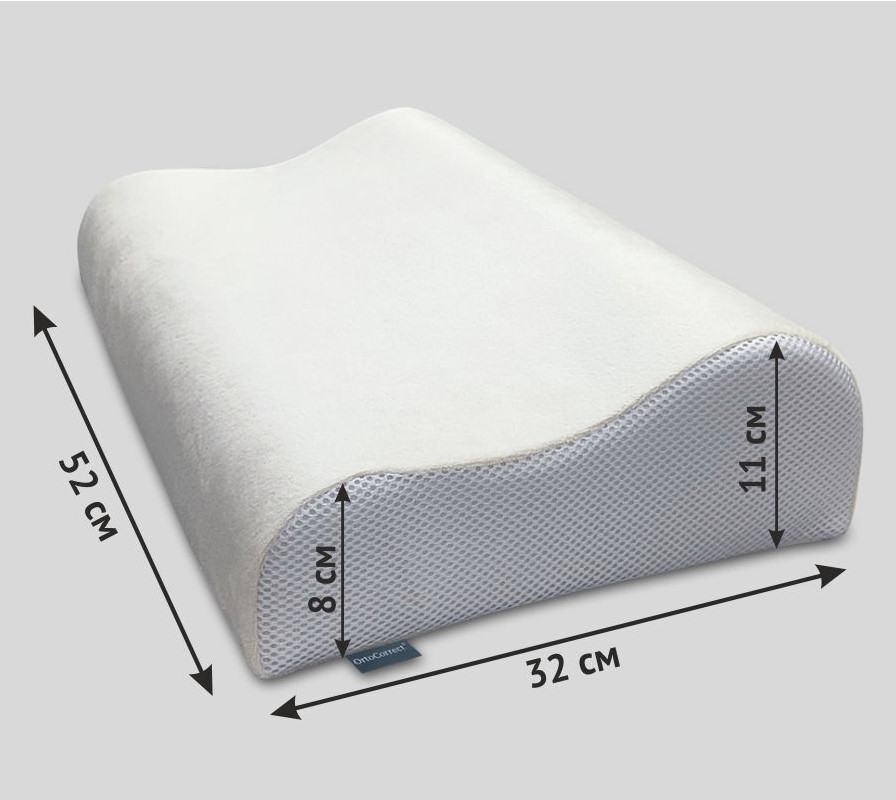 Подушки OrtoCorrect выполнены из гипоаллергенного и экологически чистого материала в состав которого входит вязко-эластичная пена. Подушка имеет два валика разной высоты. Для сна на боку используйте высокую часть подушки, низкая часть подойдет тем, кто предпочитает сон на спине. Подушку легко перевернуть, если ваши предпочтения изменятся. Наполнитель из пенополиуретана с эффектом памяти повторяет контуры головы, шеи и плеч и снимает мышечное напряжение. Двойной чехол надежно сохраняет внутренность подушки в идеальной чистоте. Комфортный сон гарантирован независимо от температуры в комнате, мягкий «дышащий» чехол из велюра c перфорированными вставками, обеспечивает испарение влаги и хорошую воздухопроницаемость.