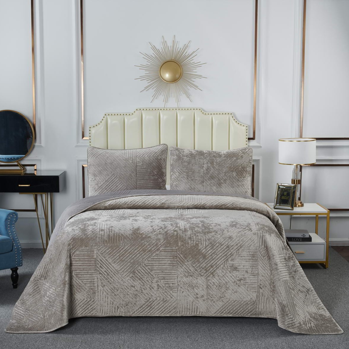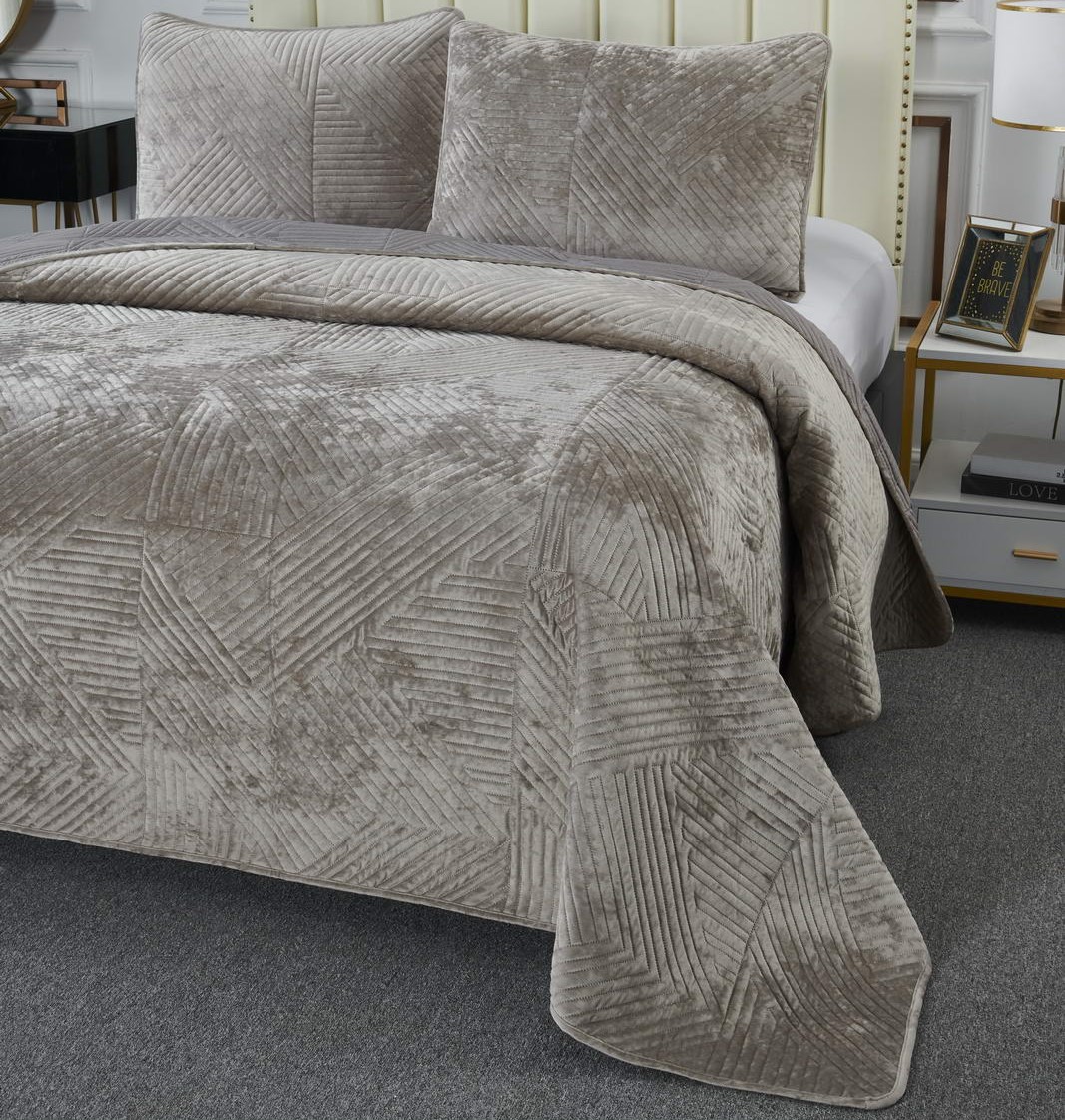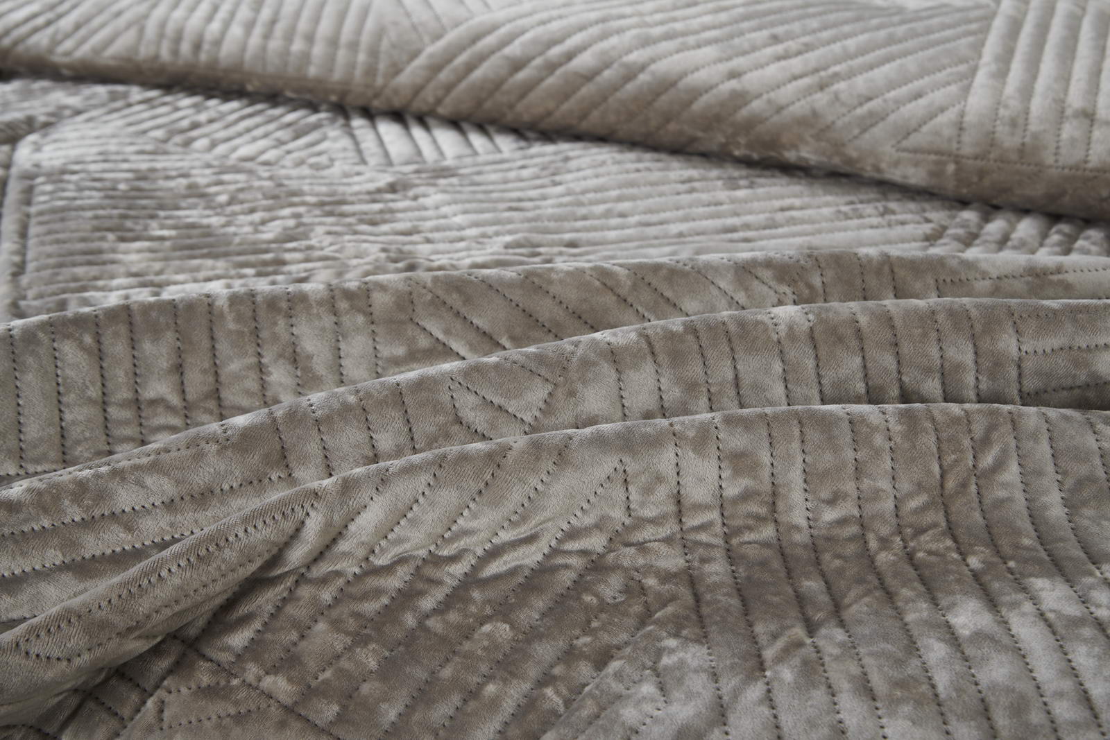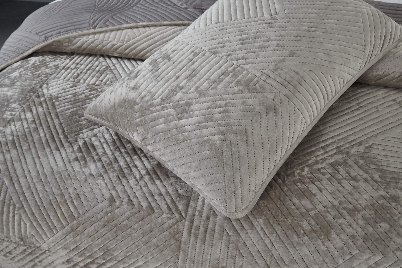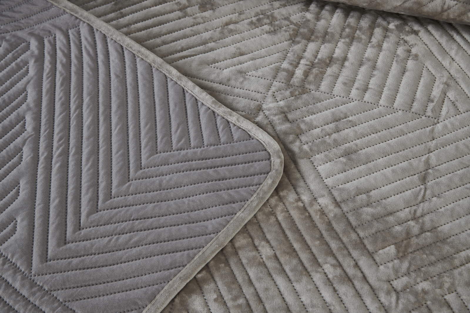 Серия стеганых велюровых покрывал от Sofi de Marko (Coфи де Марко). Покрывало украшает лаконичный геометрический орнамент. Геометрия всегда была и остаётся актуальной классикой. Конфигурация различных фигур, углов и линий позволяет им органично вписаться в самые разнообразные интерьерные стили. Покрывало состоит на 30% из хлопка и на 70% из вискозы. Вся продукция текстильного производителя Sofi De Marko выполнена из экологически чистых материалов и красителей, гипоаллергенна, не вызывает раздражения кожи, не теряет своего презентабельного вида и мягкости после стирки. В комплект входят покрывало и две наволочки из аналогичного материала. Каждый комплект заботливо упакован в стильную фирменную сумку.