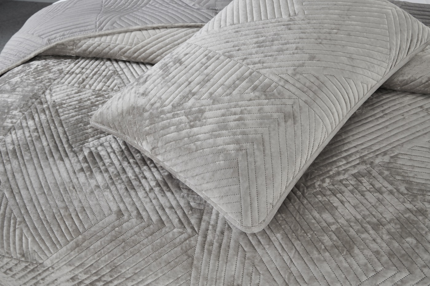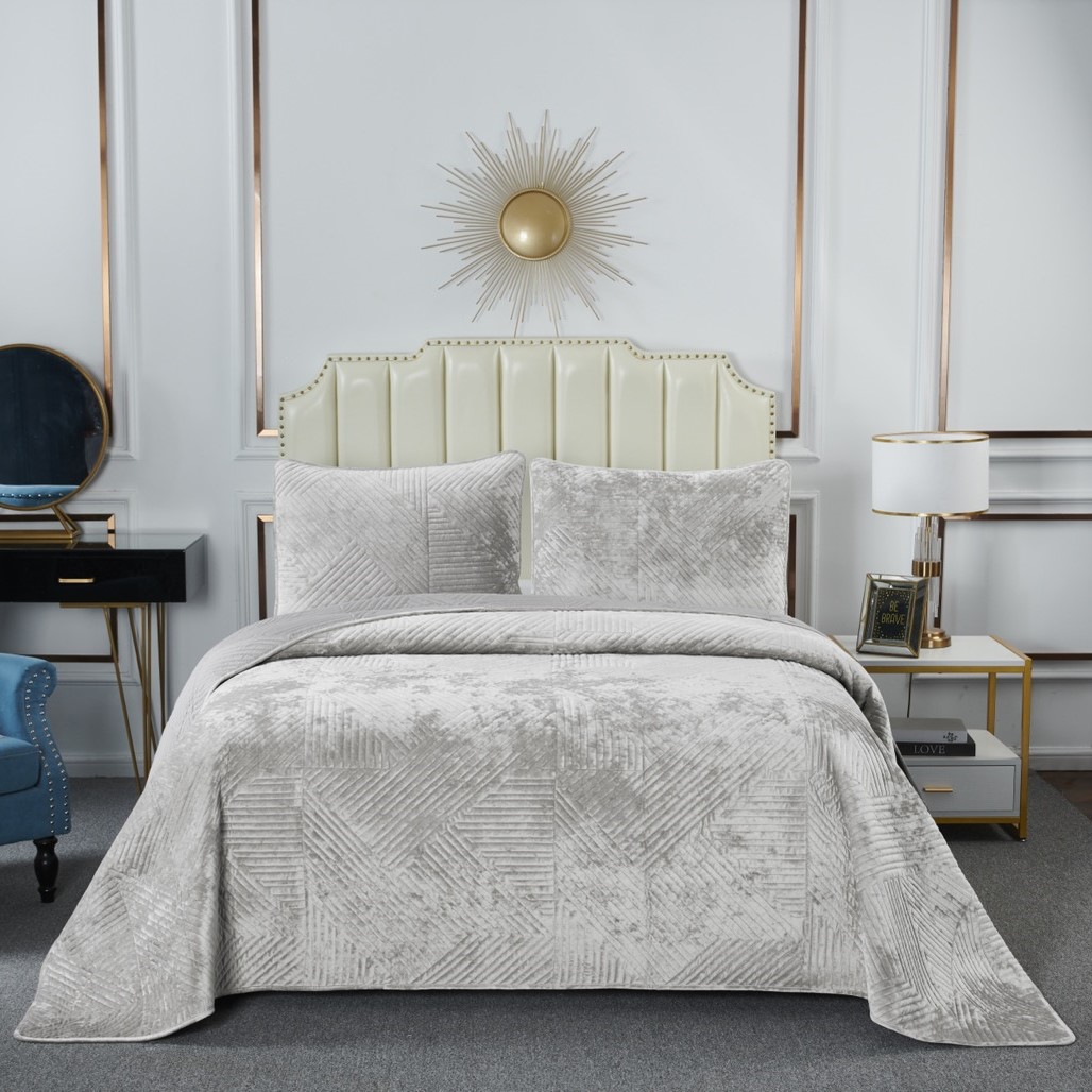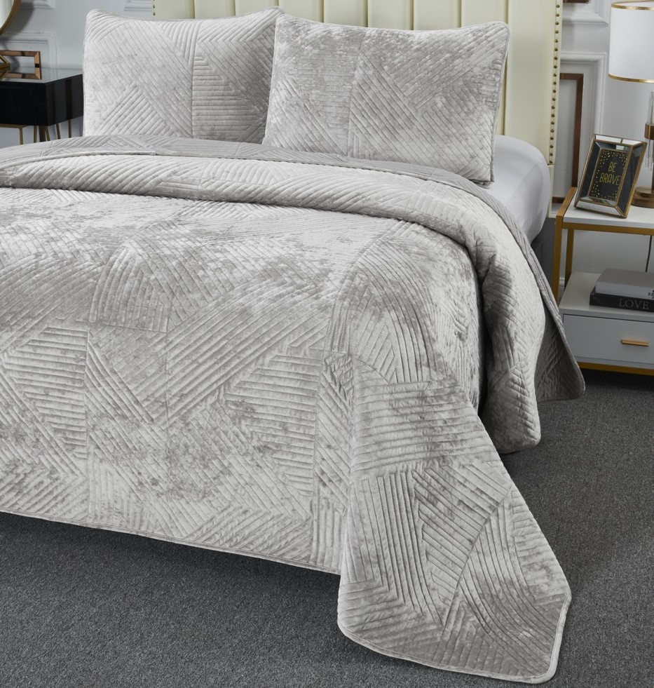 Серия стеганых велюровых покрывал от Sofi de Marko (Coфи де Марко). Покрывало украшает лаконичный геометрический орнамент. Геометрия всегда была и остаётся актуальной классикой. Конфигурация различных фигур, углов и линий позволяет им органично вписаться в самые разнообразные интерьерные стили. Покрывало состоит на 30% из хлопка и на 70% из вискозы. Вся продукция текстильного производителя Sofi De Marko выполнена из экологически чистых материалов и красителей, гипоаллергенна, не вызывает раздражения кожи, не теряет своего презентабельного вида и мягкости после стирки. В комплект входят покрывало и две наволочки из аналогичного материала. Каждый комплект заботливо упакован в стильную фирменную сумку.