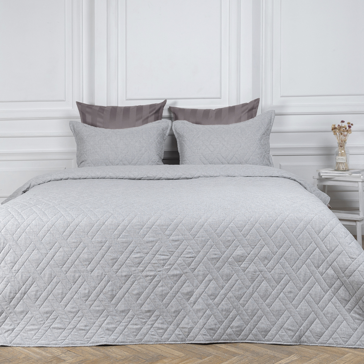 Стильное и практичное покрывало с наволочками от российского производителяи La Prima — это идеальное и практичное решение для вашего интерьера. В комплект входят мягкое покрывало с изысканным узором и две наволочки, которые идеально дополняют друг друга. На наволочках есть элегантные "ушки" для стильного акцента. Нежные спокойные оттенки и лаконичный дизайн делают этот набор подходящим для любого стиля спальни. Покрывало легко стирается и сохраняет свою форму, а наволочки надежно фиксируются благодаря удобным молниям. Создайте уют и комфорт в вашей спальне с этим элегантным набором!