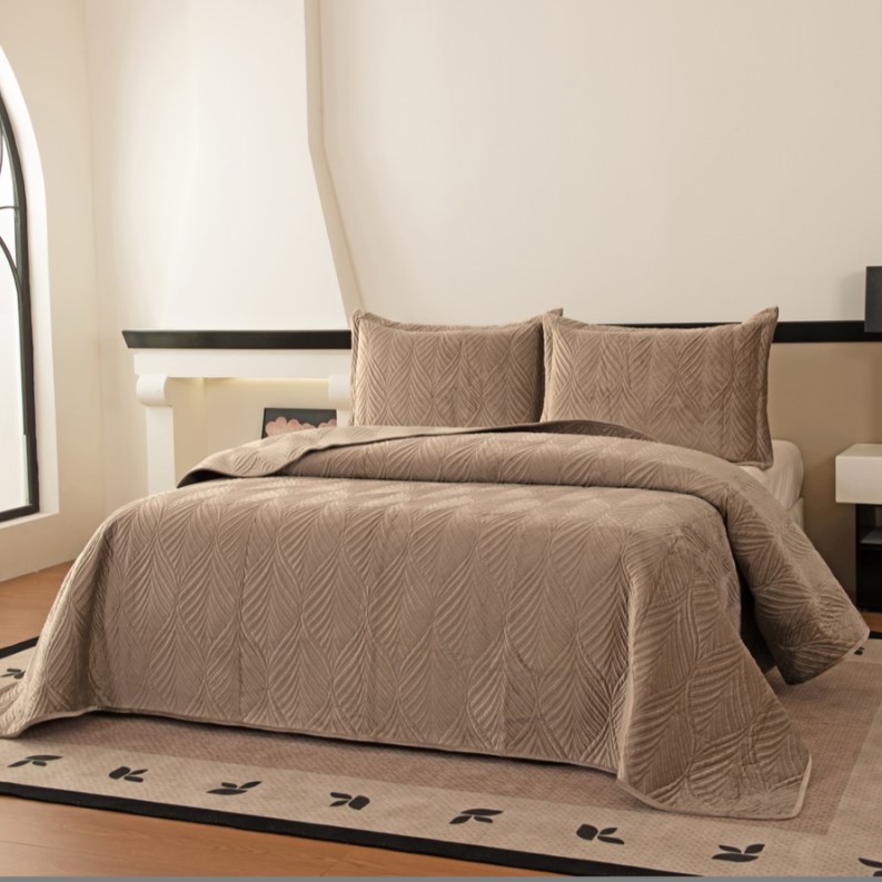 Этот комплект не только украсит вашу кровать, но и обеспечит комфорт благодаря качественным материалам. Велюр легко стирается и сохраняет свой первоначальный вид даже после длительного использования.Создайте атмосферу уюта и гармонии в вашей спальне с этим стильным и практичным комплектом.