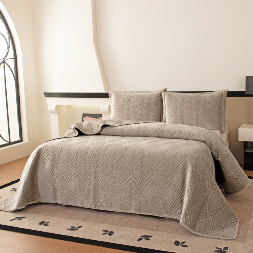 Элегантное покрывало и две наволочки "Sofi De Marko" станут изысканным украшением вашей спальни. Покрывало размером 240х260 см выполнено из мягкого велюра, который приятен на ощупь и создает ощущение уюта. Наволочки размером 50х70 см идеально дополняют комплект, добавляя завершённости и стиля. Этот комплект не только украсит вашу кровать, но и обеспечит комфорт благодаря качественным материалам. Велюр легко стирается и сохраняет свой первоначальный вид даже после длительного использования.Создайте атмосферу уюта и гармонии в вашей спальне с этим стильным и практичным комплектом.