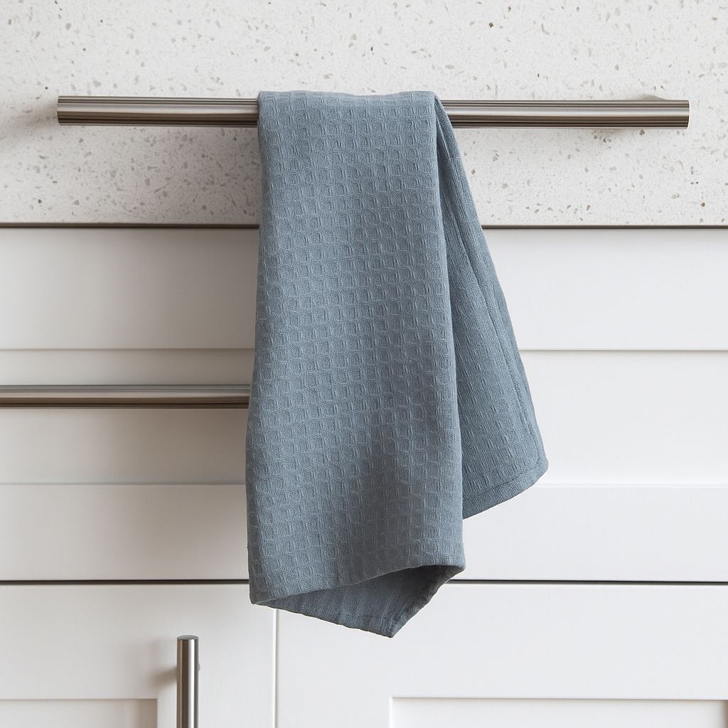 Вафельное кухонное полотенце изготавливают из 100% хлопка. За счет вафельной структуры такие полотенца особенно хорошо впитывают влагу и быстро сохнут. Благодаря специальной обработке ткань надолго остается мягкой. Приятные на ощупь, и незаменимы на кухне. Они выдерживают многочисленные стирки, сохраняя свой первоначальный вид, не теряют форму и цвет. Стильная однотонные палитра вафельных полотенец легко впишется в любой интерьер. Полотенца можно использовать не только на кухне, но и в ванной комнате для рук и лица. На каждом изделии петелька для подвешивания для удобства использования.
