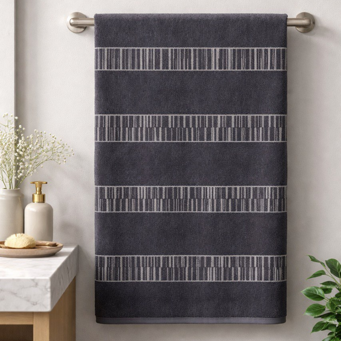 Представляем мягкое и практичное полотенце из натурального 100 % хлопка — идеальный выбор для ежедневного использования. Плотность полотна 520 г/м² обеспечивает оптимальный баланс между лёгкостью и впитывающей способностью: полотенце достаточно воздушное, чтобы быстро сохнуть, но при этом эффективно поглощает влагу. Натуральный хлопок гарантирует гипоаллергенность и комфорт даже для чувствительной кожи, а также отличается долговечностью и устойчивостью к частым стиркам. Изделие сохраняет форму и мягкость после многократного использования, не линяет и не теряет привлекательного внешнего вида. Такое полотенце станет незаменимым аксессуаром в ванной комнате, обеспечивая приятные ощущения после душа или бани и гармонично вписываясь в любой интерьер.