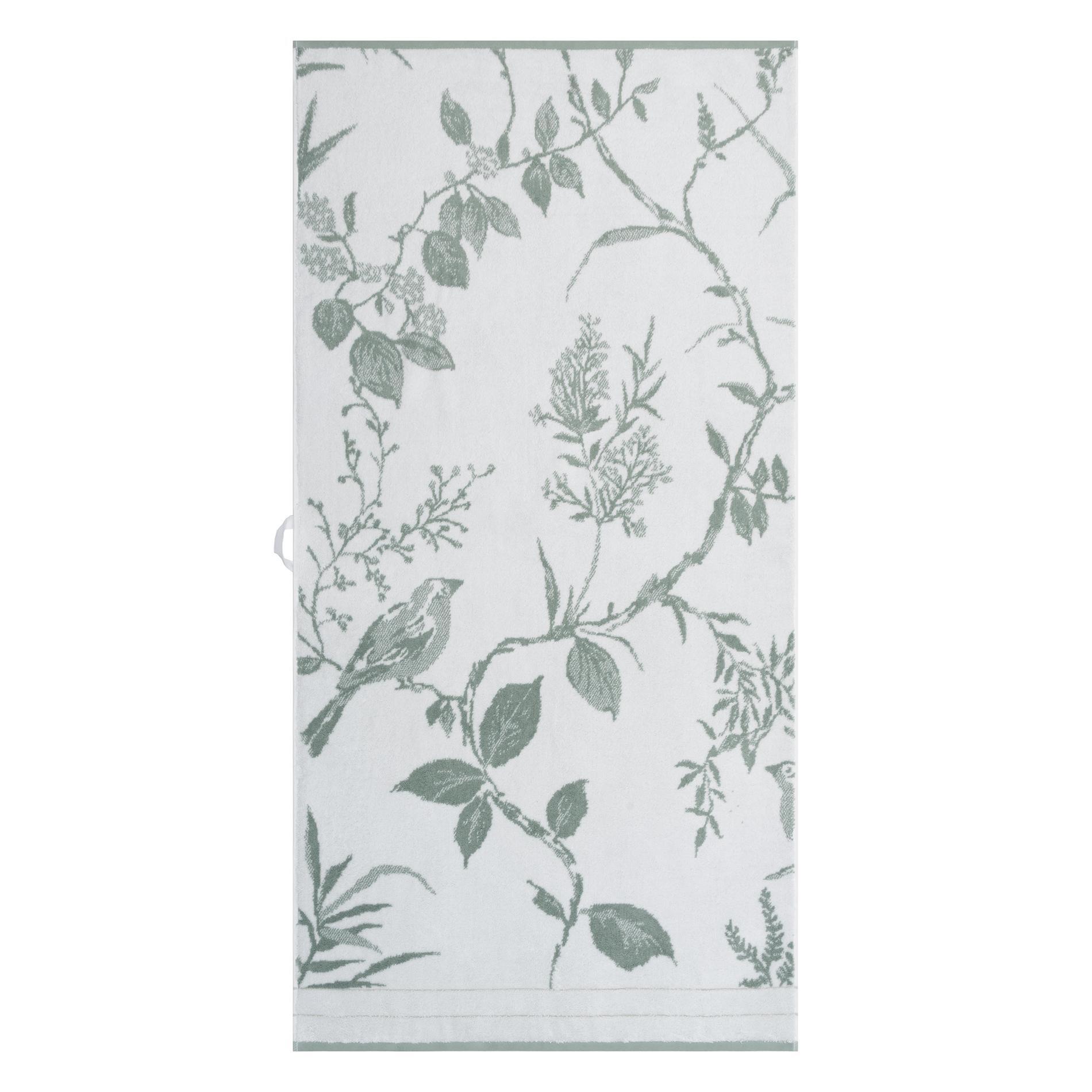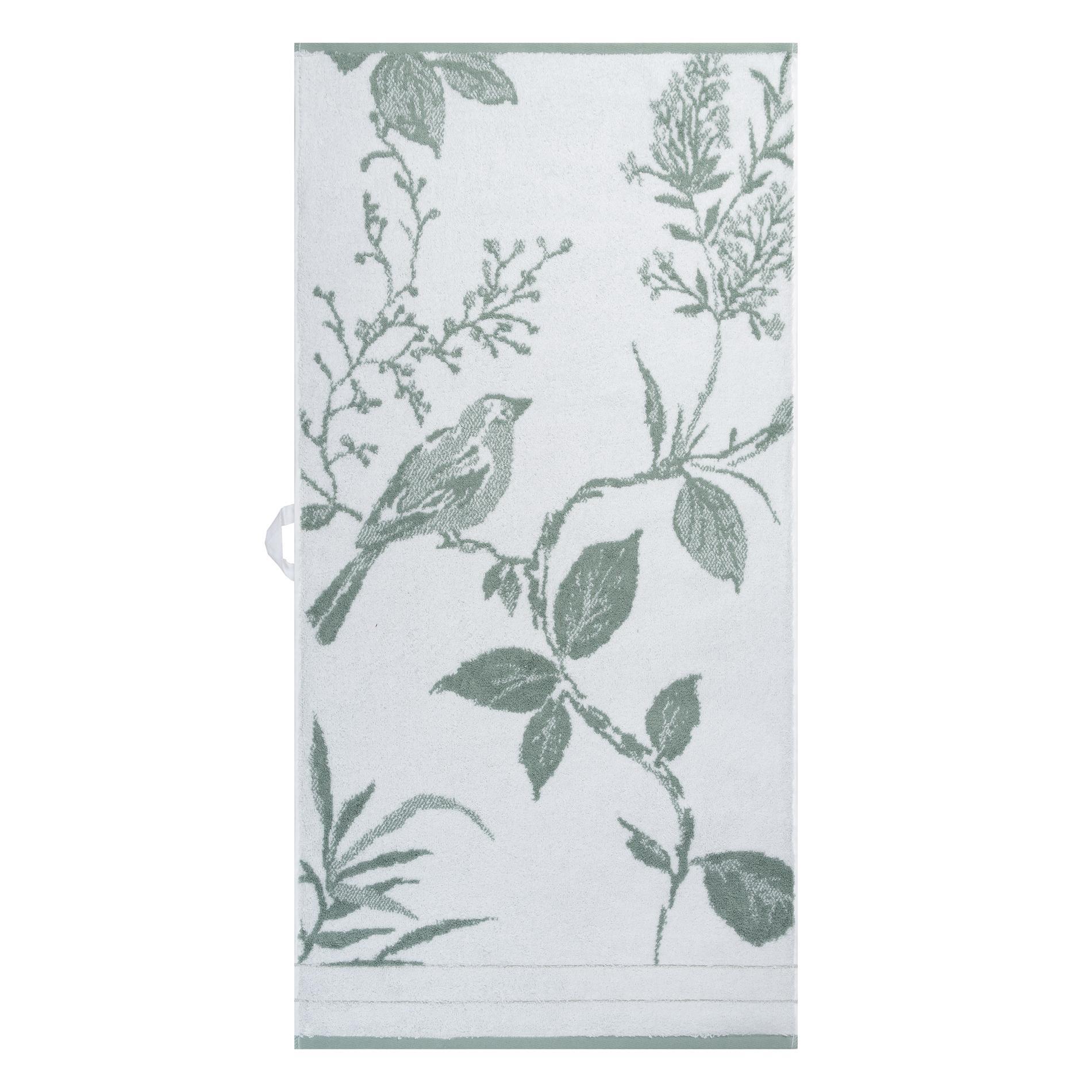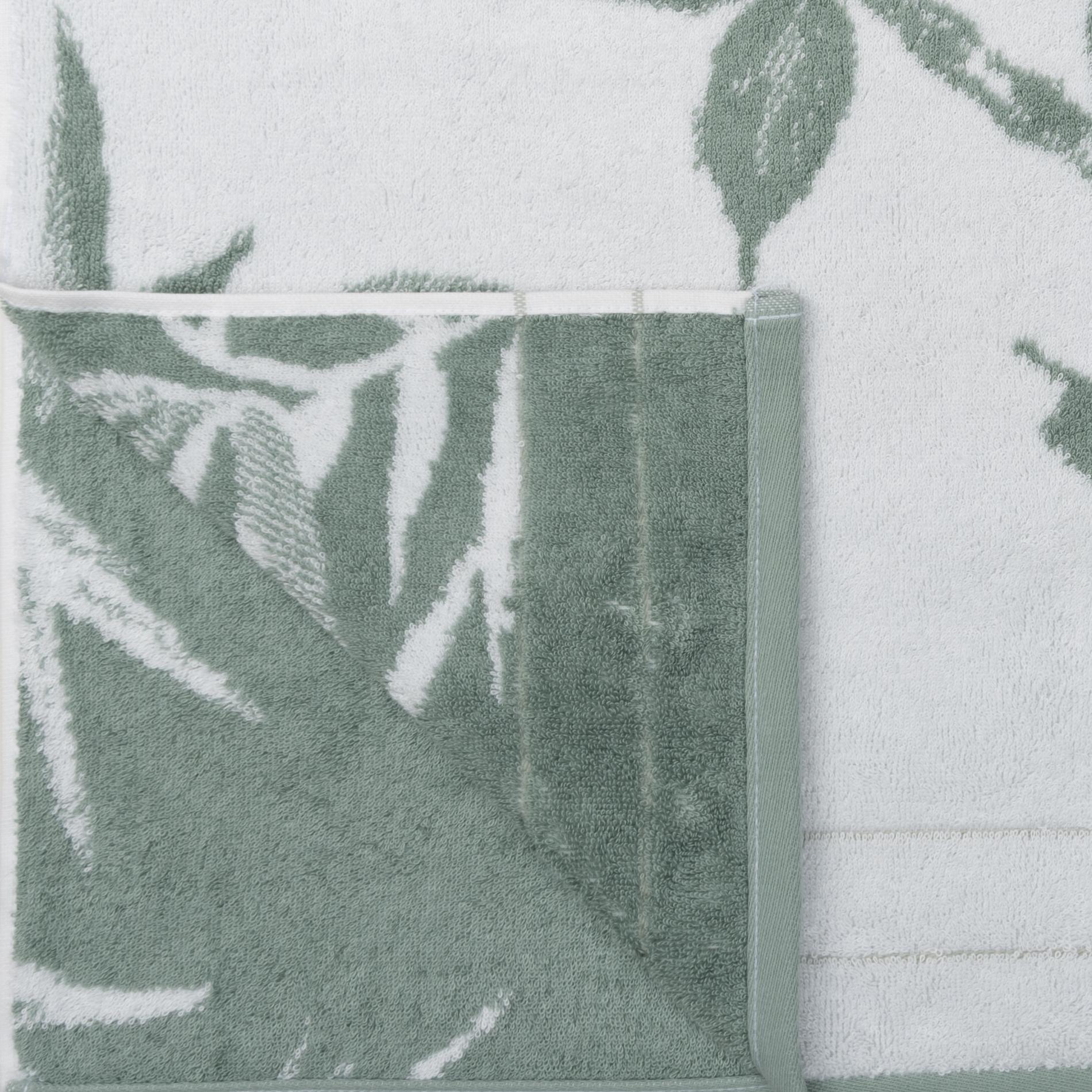 Махровое пестротканое полотенце выполнено из натуральной смесовой пряжи (60% бамбук + 40% хлопок). Бамбук в составе этого изделия отвечает за антибактериальные свойства и долговечность: оно не линяет после стирки и хорошо держит форму, сохраняя при этом свою мягкость. Изделие украшено приятным глазу растительным принтом и выполнено в сочетании белого цвета и зеленого оттенка «туманный папоротник». Благодаря разработке (чередованию петель двух основных цветов) в принте создается визуальный эффект дополнительного оттенка. В нижней части изделие украшено саржевыми косичками зеленого оттенка хэмлок. Полотенце имеет петельку из репсовой ленты для удобного хранения в ванной.