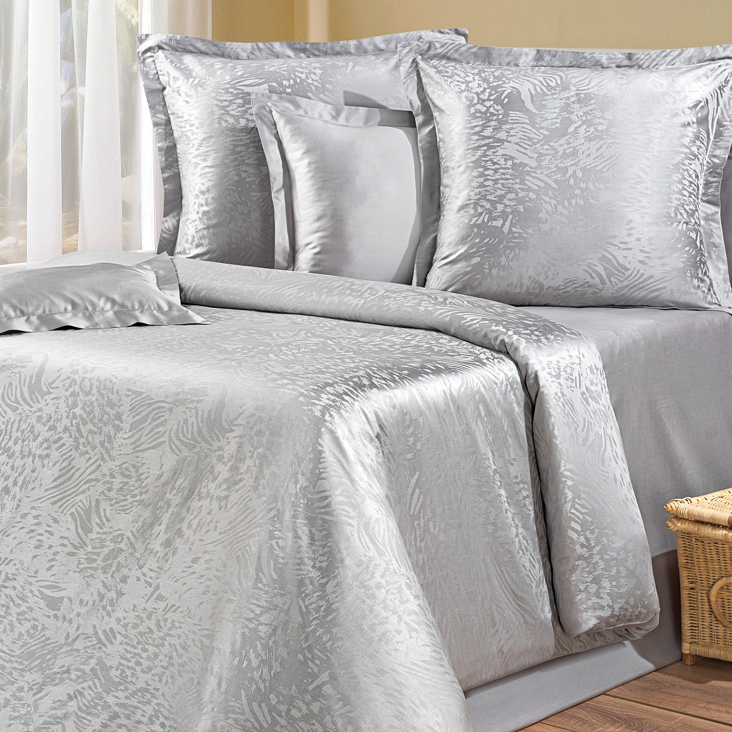 Постельное белье Cotton Dreams Жаккард–шелковистое, прочное, с роскошным рельефным рисунком, который получается благодаря сложному переплетению нитей. Постельное белье из жаккардового сатина выгодно подчеркнет интерьер вашей спальни благодаря фактурному орнаменту с благородным блеском. В состав ткани входит вискоза для того, чтобы придать рисунку характерный блеск. Для производства используют экологические, высококачественные красители глубокого окрашивания. Материал безопасный, экологичный и гипоаллергенный. Высокая плотность ткани обеспечивает долгий срок службы белья, даже после многократных стирок оно сохранит свой прекрасный вид.