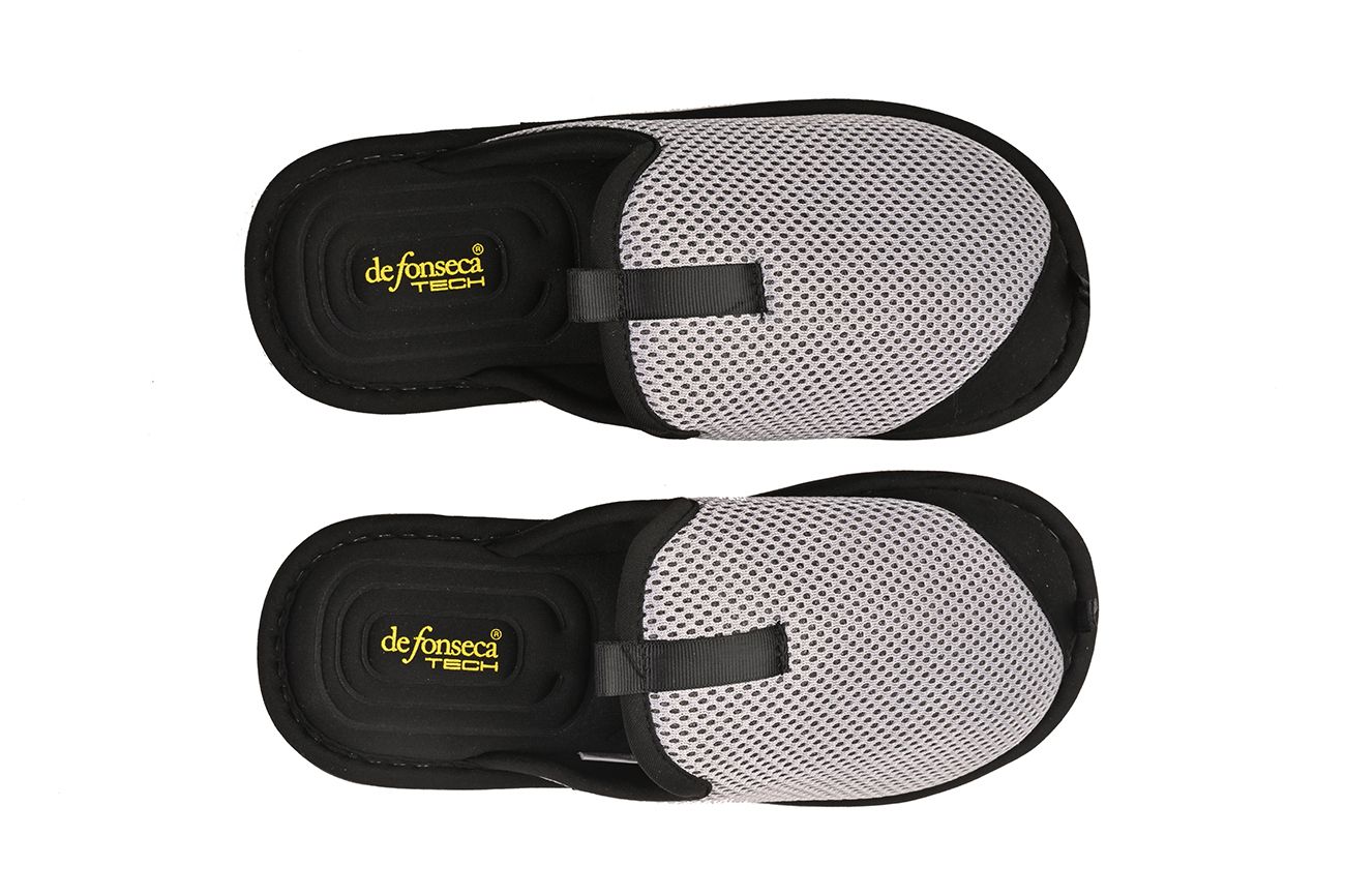 Современные мужские домашние тапки в спортивном стиле — сочетание удобства и лаконичного дизайна. Верх выполнен из серой сетчатой ткани с флуоресцентным эффектом, который придает модели актуальную визуальную глубину, а черная подошва и кант создают стильный контраст. Преимущества: дышащий сетчатый материал — комфортная вентиляция при длительной носке; комфортная посадка, приятная к телу отделка; улучшенное уплотнение стельки с неопрено́вым тиснением — дополнительная амортизация и долговечность; спортивно‑современный силуэт, подходящий для дома и повседневного отдыха; контрастная черная подошва и кант — практичность и аккуратный финал образа. Идеальны для домашних дел и спокойного отдыха — практичные, стильные и продуманные до мелочей. Итальянская компания De Fonseca - мировой лидер в производстве качественной обуви для дома. Главные преимущества компании-безупречный стиль модельеров Италии и новейшие технологии для комфорта и здоровья Ваших ног.