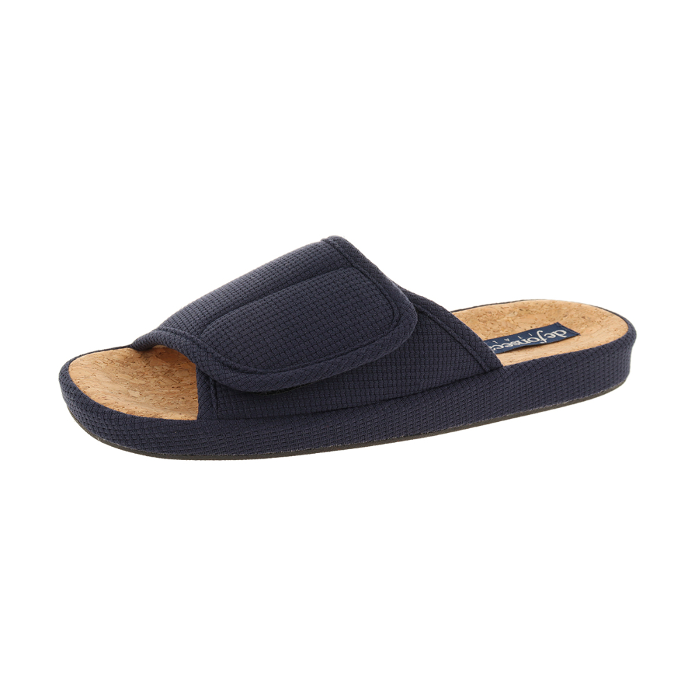 Мужские домашние тапочки De Fonseca — воплощение комфорта и практичности для ежедневных домашних дел. Модель выполнена в лаконичном тёмно-синем цвете который подойдёт к разной домашней одежде. Верх тапочек изготовлен из мягкой текстильной ткани: материал приятен на ощупь, хорошо пропускает воздух. Особенность модели — удобная застёжка-клапан, которая надёжно фиксирует тапочек на ноге, исключая соскальзывание. Анатомическая стелька из натурального пробкового материала обеспечивает правильную поддержку стопы и способствует расслаблению после трудового дня.Тапочки отлично подойдут для использования как в тёплое, так и в прохладное время года — они сохраняют тепло, но при этом не перегревают стопу.Практичные, долговечные и удобные тапочки De Fonseca станут незаменимой частью домашнего гардероба, подарят ощущение уюта и заботы каждый день.