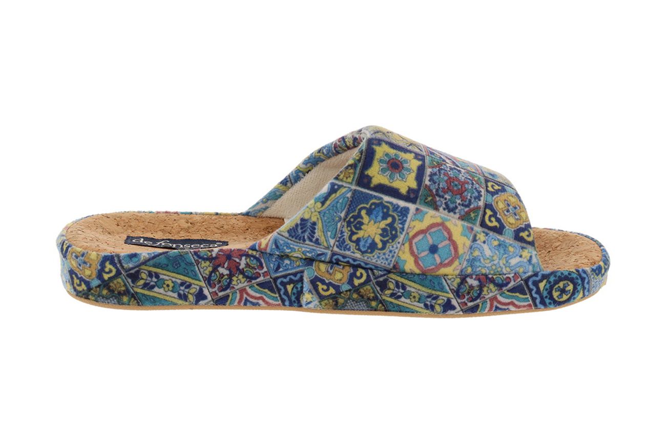 Легкие и изысканные открытые домашние тапки в сине‑голубой гамме с узором, вдохновлённым марокканской мозаикой. Мягкий велюровый текстиль приятен на ощупь и придаёт модели уютный, элегантный вид, а открытый фасон делает тапки идеальными для тех, кто ценит свободу движений. Пробковая стелька с анатомическим профилем обеспечивает естественную поддержку стопы, амортизацию и комфорт при длительной носке; мягкая велюровая поверхность дарит приятные тактильные ощущения и аккуратный внешний вид; узоры в стиле марокканской мозаики делают модель яркой, но в то же время изысканной — универсально подходят к домашнему гардеробу; надёжная резиновая подошва с хорошим сцеплением обеспечивает устойчивость и долговечность. Итальянская компания De Fonseca - мировой лидер в производстве качественной обуви для дома. Главные преимущества компании-безупречный стиль модельеров Италии и новейшие технологии для комфорта и здоровья Ваших ног.