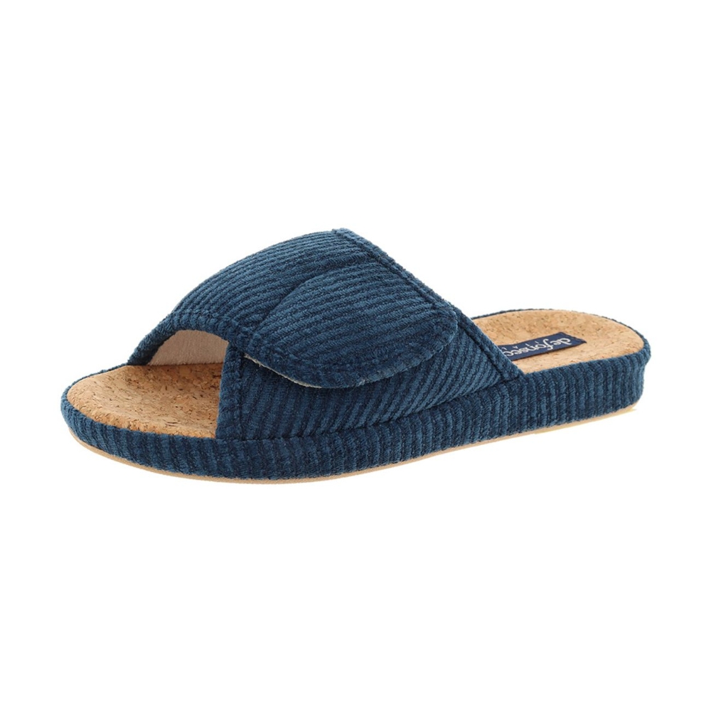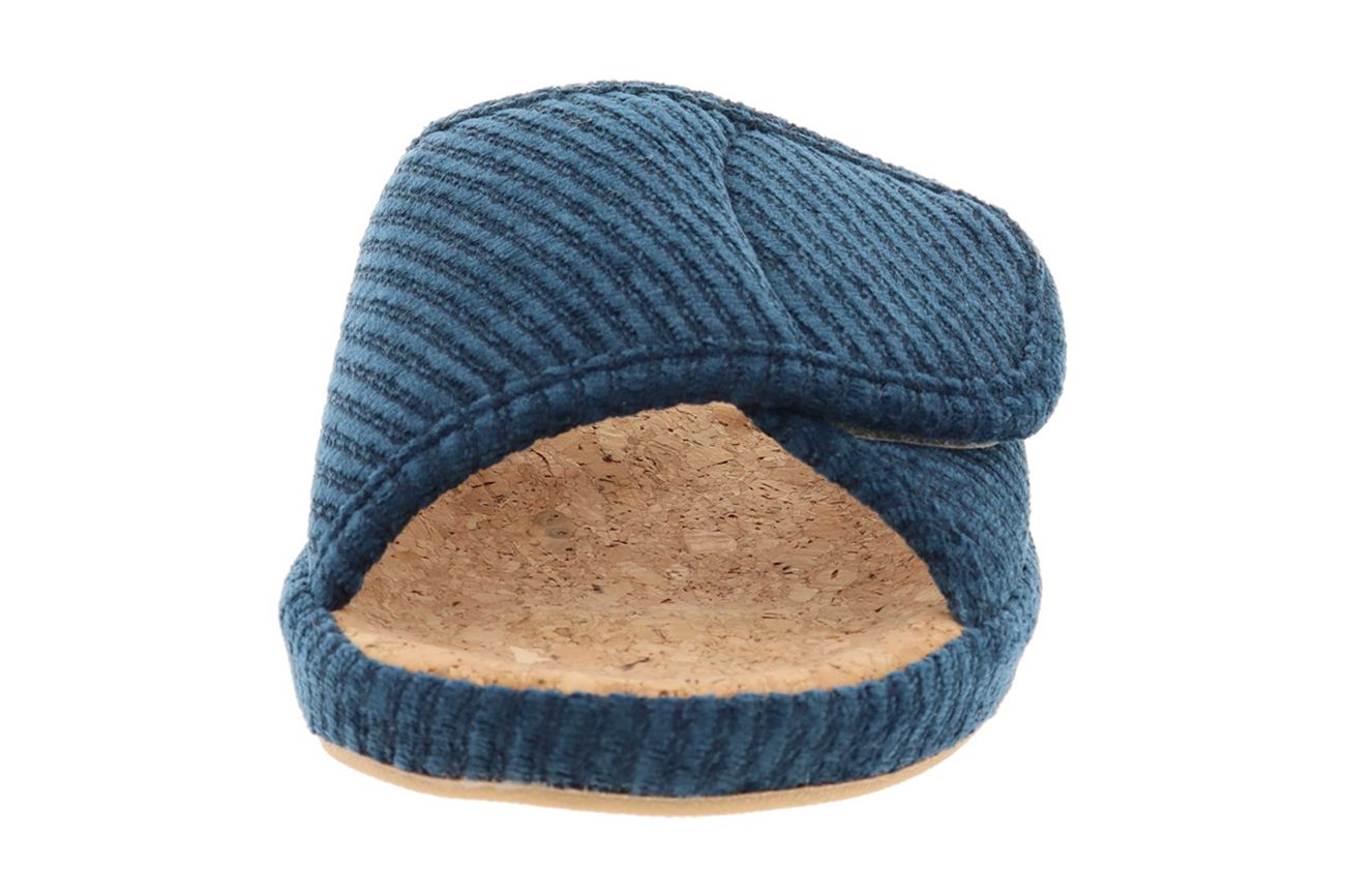 Нежные открытые женские тапочки в глубоким синем оттенке — идеальный союз элегантности и домашнего комфорта. Мягкий велюр приятно облегает стопу, а продуманная конструкция дарит поддержку и свободу движений на каждый день. Пробковая анатомическая стелька — естественная поддержка свода, амортизация и отличная вентиляция при длительной носке; открытая модель — легкость и воздушность, идеально для домашних дел; регулируемый объём на липучке — удобная посадка для любой полноты стопы, легко подстраивается под изменение объёма ног; надёжная резиновая подошва — износостойкость и хорошее сцепление с поверхностью; велюровый текстиль — приятный на ощупь, аккуратный внешний вид и простота ухода; стильный синий цвет — универсальный и спокойный акцент в домашнем гардеробе. Итальянская компания De Fonseca - мировой лидер в производстве качественной обуви для дома. Главные преимущества компании-безупречный стиль модельеров Италии и новейшие технологии для комфорта и здоровья Ваших ног.