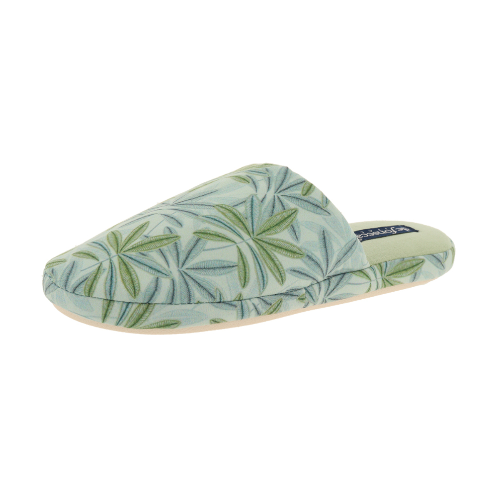 Домашние тапочки De Fonseca — воплощение уюта и стиля в каждой детали. Модель выполнена в нежном пастельном оттенке с изысканным растительным принтом: узор из зелёных листьев придаёт изделию свежесть и лёгкость, превращая обычную домашнюю обувь в стильный аксессуар. Мягкая верхняя часть обеспечивает комфорт при носке, обволакивая стопу и создавая ощущение невесомости. Удобная конструкция без застёжек позволяет быстро обуться, а анатомическая форма способствует правильному распределению нагрузки на стопу. Подошва выполнена из прочного, но гибкого материала, который не скользит на различных поверхностях — от ламината до керамической плитки. Это делает тапочки безопасными для использования в ванной комнате или на кухне.Практичность модели сочетается с её эстетикой: лаконичный дизайн легко впишется в любой интерьер, а приглушённые тона не маркие и не теряют насыщенность даже после множества стирок.