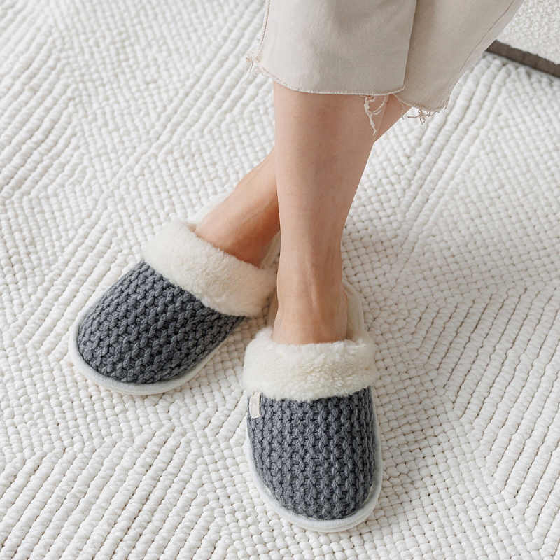 Тапочки Эрия с двухслойным верхом из шерстяного вязаного полотна. Внутренняя часть верха и стелька изготовлены из итальянского трикотажного полотна, в которое прикреплён живой волос овцы.