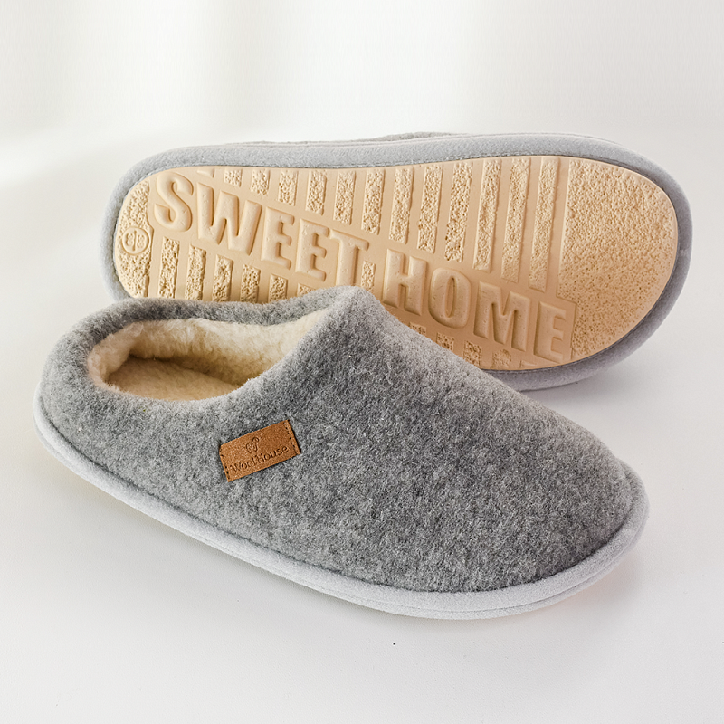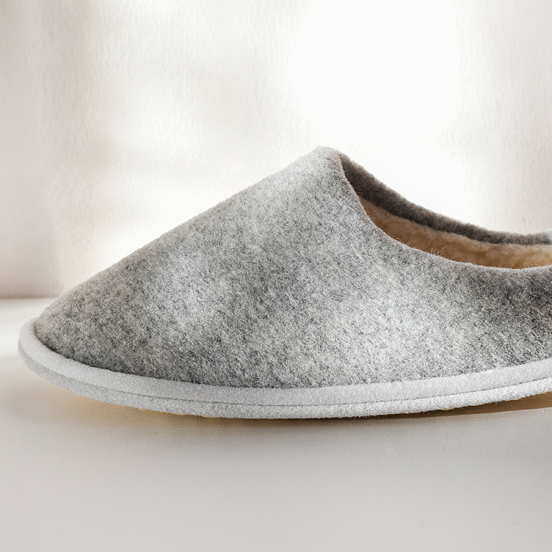 Комнатные тапочки с двухслойным верхом. Верхний слой модели изготовлен из трикотажного хлопкового полотна. Внутренняя часть верха и стелька - из натуральной шерсти мериноса. Прочная, износостойкая и антискользящая ЭВА-подошва. Шерсть наделена многими полезными свойствами. Благодаря высокой концентрации в овечьей шерсти ланолина, ношение изделий из нее облегчает боль в суставах и мышцах, стимулирует кровообращение, улучшает микроциркуляцию, сохраняет тепло и отводит влагу, позволяя ногам оставаться всегда теплыми и сухими. Преимущества изделий из шерсти: