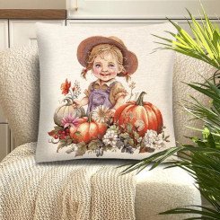 Декоративная наволочка "Гобелен" Тыквы и подсолнухи Девочка 45*45 (±2) см