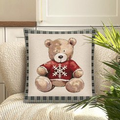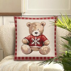 Декоративная наволочка "Гобелен" Мишка красный бордюр 45*45 (±2) см
