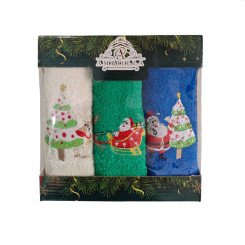 Комплект махровых полотенец для кухни 3 шт. "Ambiella" Праздничное кремовый/зеленый/синий 30*50 см