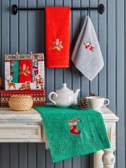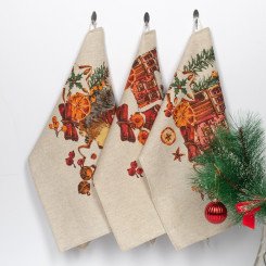 Комплект полотенец для кухни 3 шт. "Ambiella" Noel кремовый/зеленый/красный 40*60 см