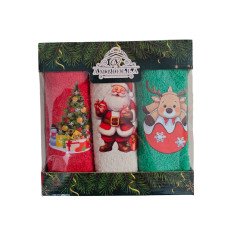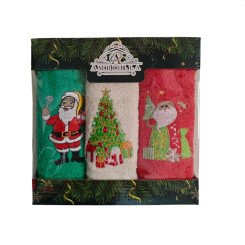 Комплект махровых полотенец для кухни 3 шт. "Ambiella" Noel кремовый/зеленый/красный 30*50 см