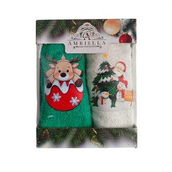 Комплект махровых полотенец для кухни 2 шт. "Ambiella" Noel №4 кремовый/зеленый 30*50 см
