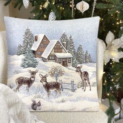 Декоративная наволочка "Гобелен" Лесные друзья три оленя домик 45*45 (±2) см