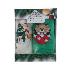 Комплект полотенец для кухни 2 шт. "Ambiella" Noel кремовый/зеленый 40*60 см