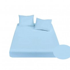 Простыня на резинке Сатин "Nova" голубой 200*200 высота 25 см
