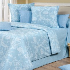 Постельное белье Перкаль Премиум Valencia- Комо голубой Дуэт (семейное)